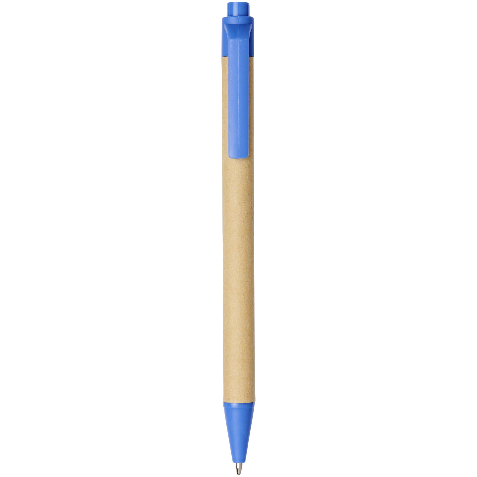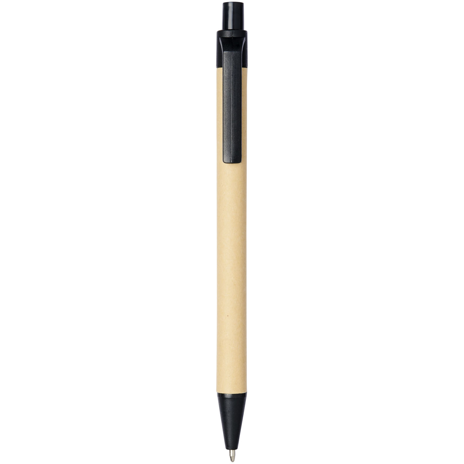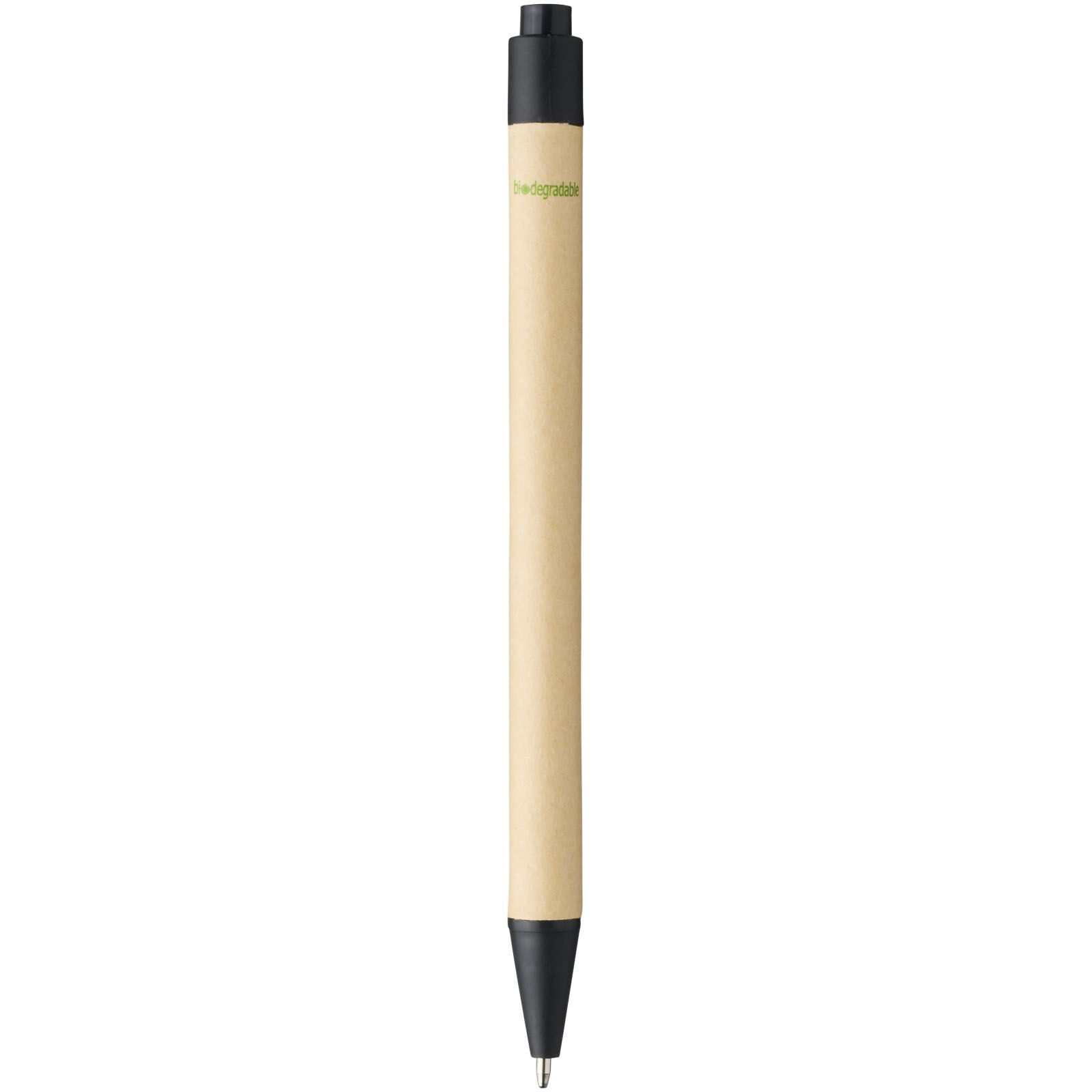 Przyjazny dla środowiska długopis automatyczny z korpusem wykonanym z ulegającego biodegradacji materiału papierowego i wykończeniami z plastiku kukurydzianego dostępny w różnych kolorach. Kolor kartonu z recyklingu może się różnić.