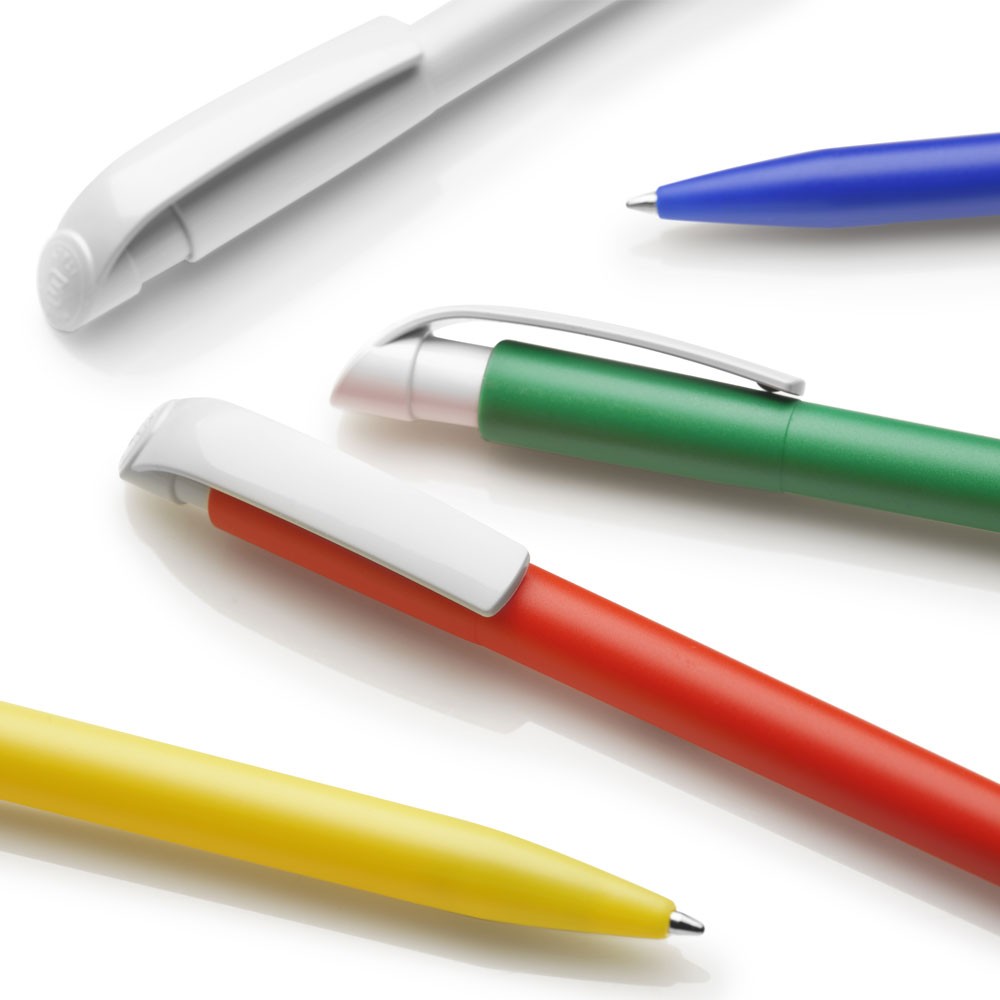 Długopis Stilolinea S45, wkład w niebieskim kolorze, kbiały klips, zawiera tusz German Dokumental Ink, produkt wykonany z ABS i plastiku