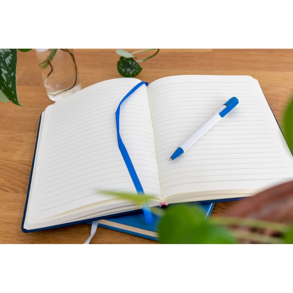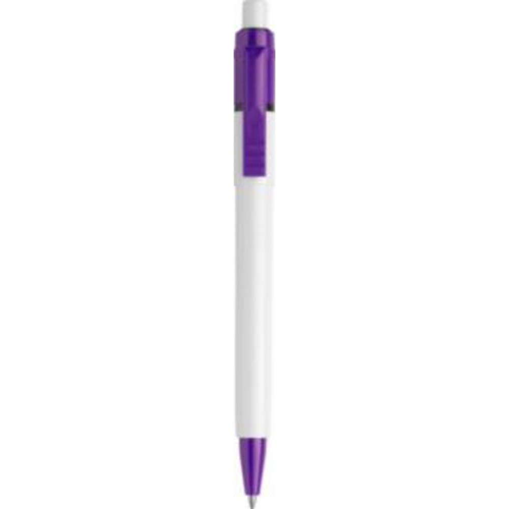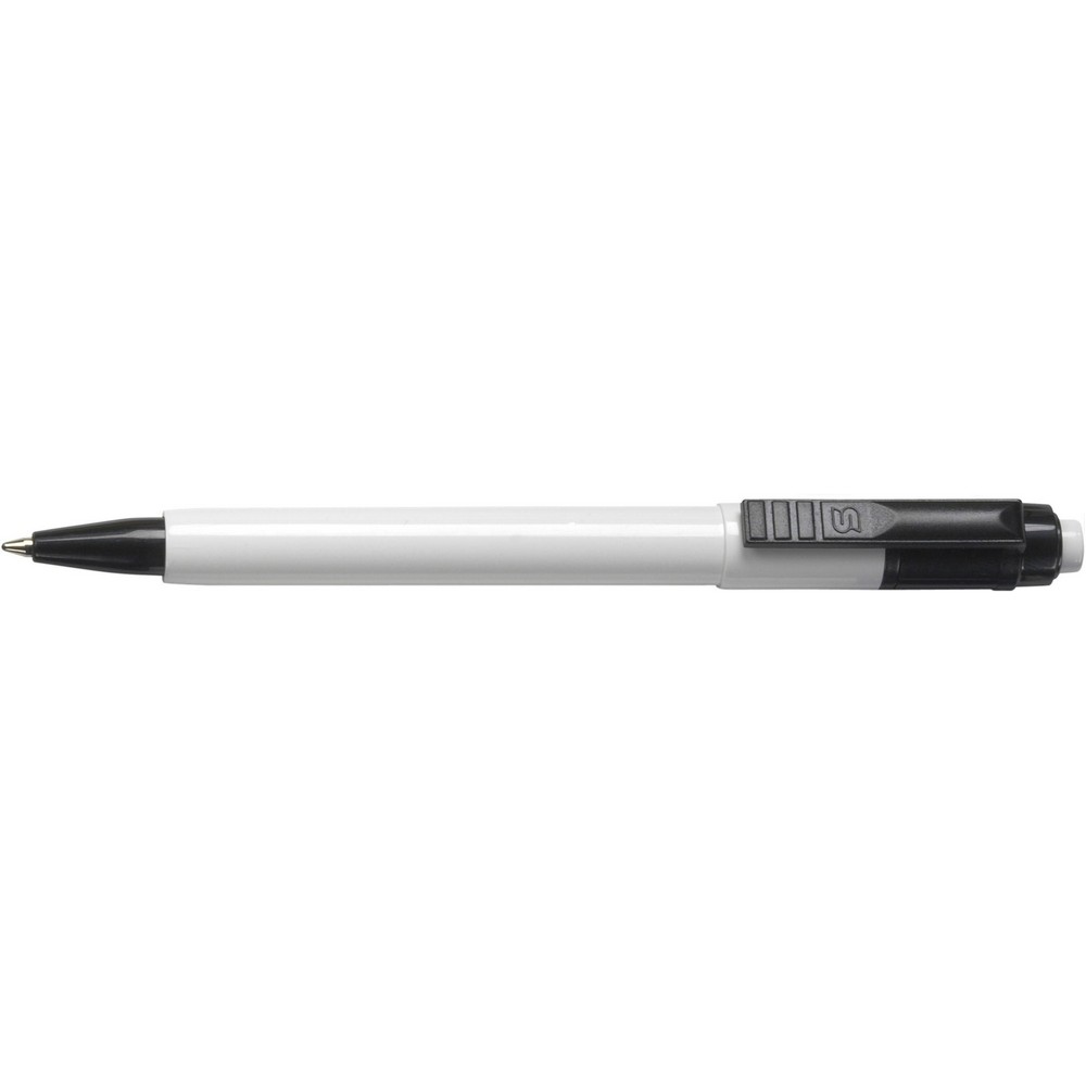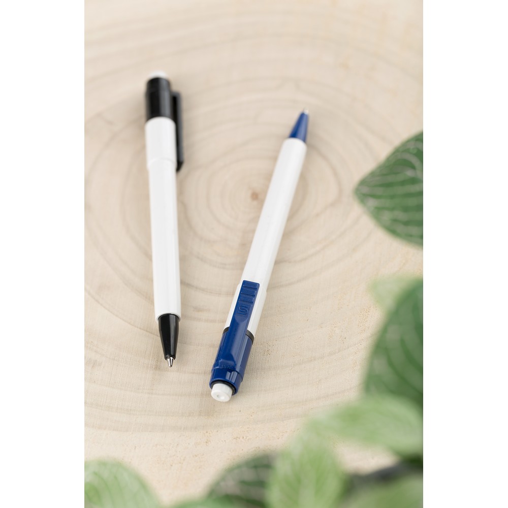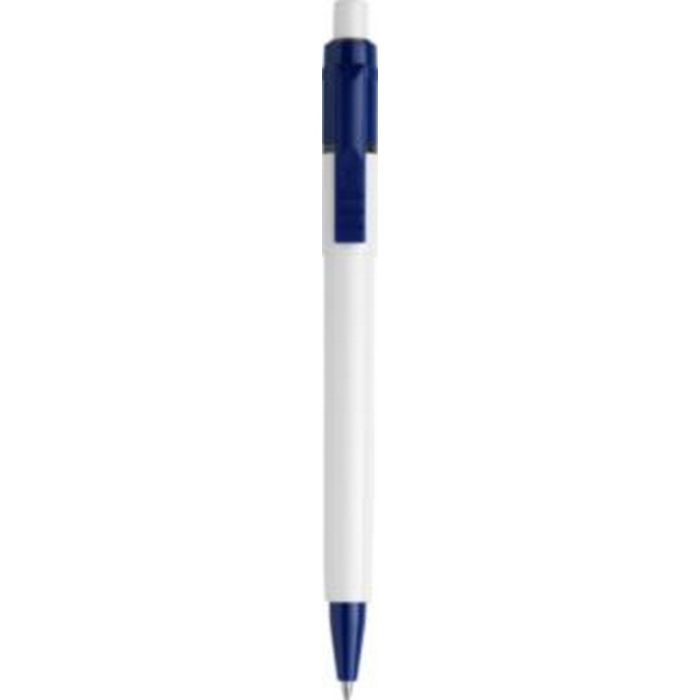 Długopis Stilolinea Baron z wkładem jumbo, biały trzon, kolorowy klips, wkład w niebieskim kolorze, zawiera tusz German Dokumental Ink, produkt wykonany z ABS, plastiku i metalu