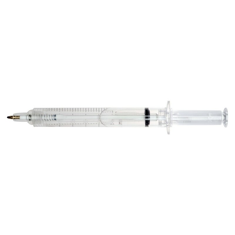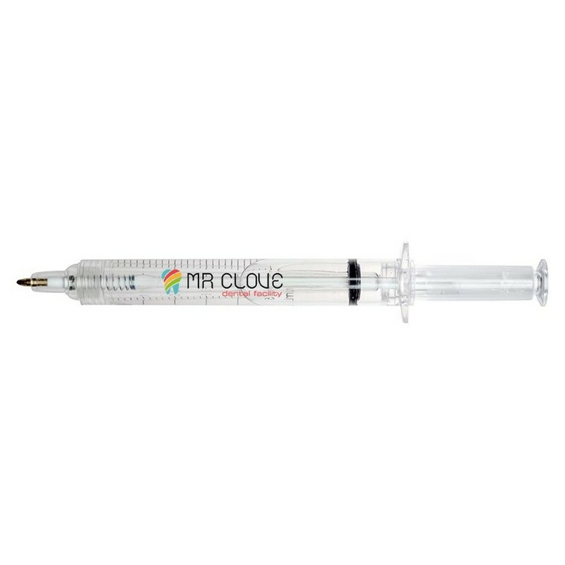 Długopis „strzykawka” z kolorowym płynem, posiada nadrukowaną skalę ml, wkład w niebieskim kolorze, produkt wykonany z AS
