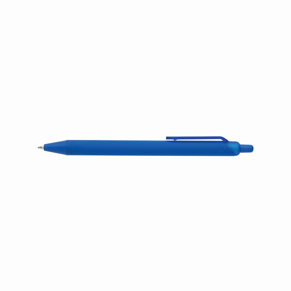 Długopis Tide RABS, wykonany w 91% z recyklingowanego ABS z certyfikatem GRS, gumowany uchwyt zapewniający wygodne pisanie, matowe wykończenie przycisku, klipsa i końcówki, niebieski wkład piszący do 1200 m, mechanizm przyciskowy.