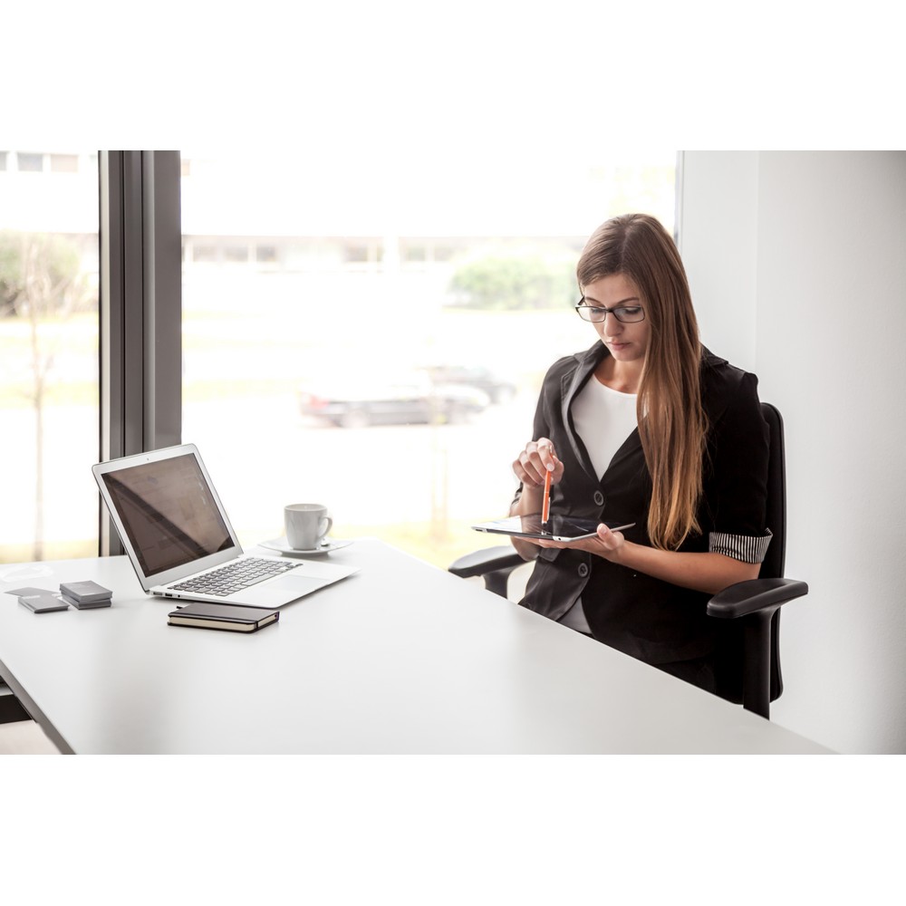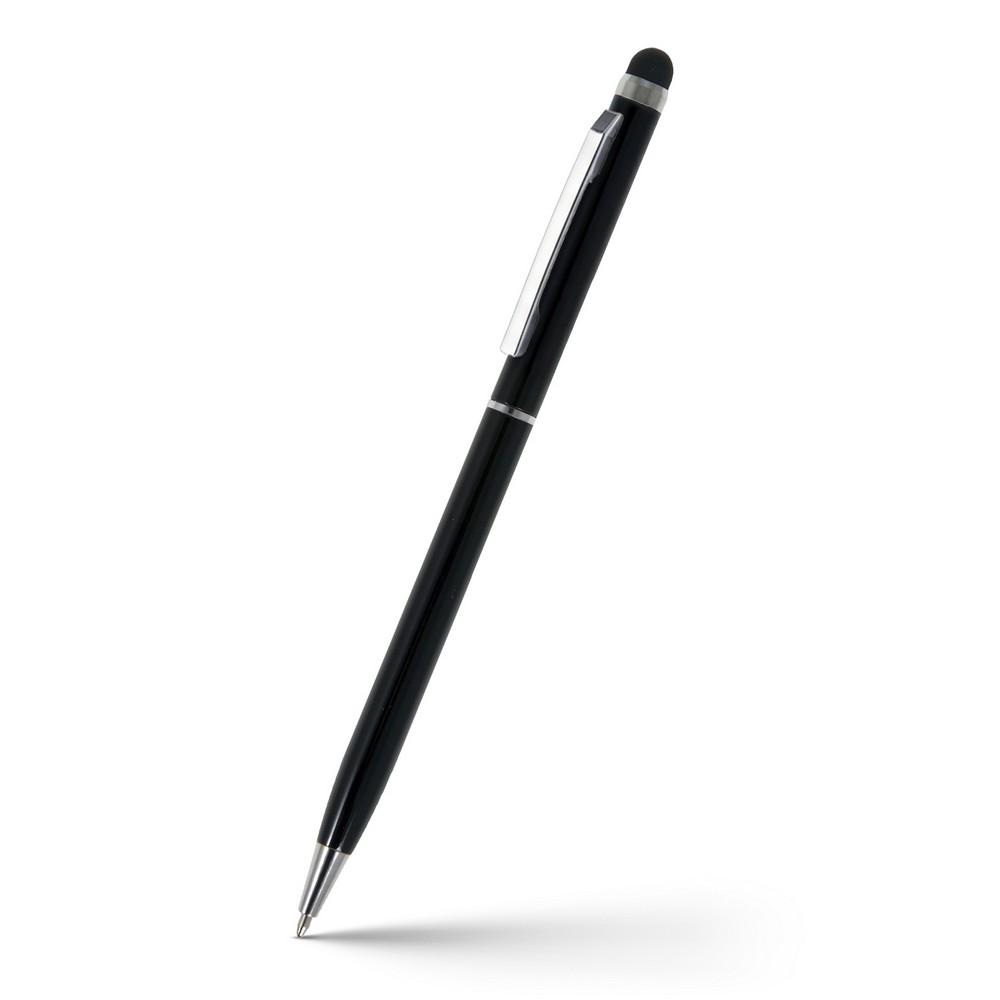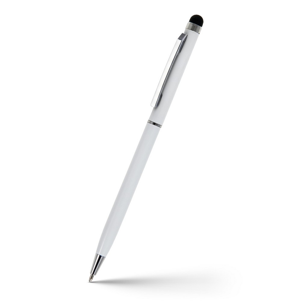 Długopis z kolorowym trzonem i elementami w srebrnym kolorze, niewielka średnica nadaje nowoczesnego wyglądu, końcówka touch pen umożliwiająca obsługę ekranów dotykowych, wkład w niebieskim kolorze, produkt wykonany z aluminium