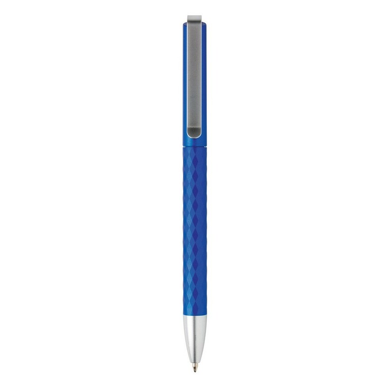 Długopis z metalowym klipem, diamentowy wzór na trzonie, niemiecki wkład Dokumental® w kolorze niebieskim w komplecie, długość pisania ok. 1200 m, kulka TC zapewnia wygodne pisanie, ślad węglowy produktu: 0,07 kg CO2