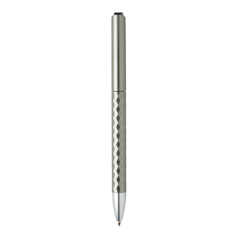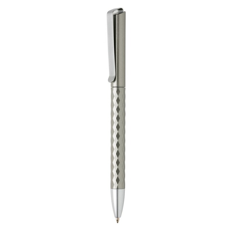 Długopis z metalowym klipem, diamentowy wzór na trzonie, niemiecki wkład Dokumental® w kolorze niebieskim w komplecie, długość pisania ok. 1200 m, kulka TC zapewnia wygodne pisanie, ślad węglowy produktu: 0,07 kg CO2