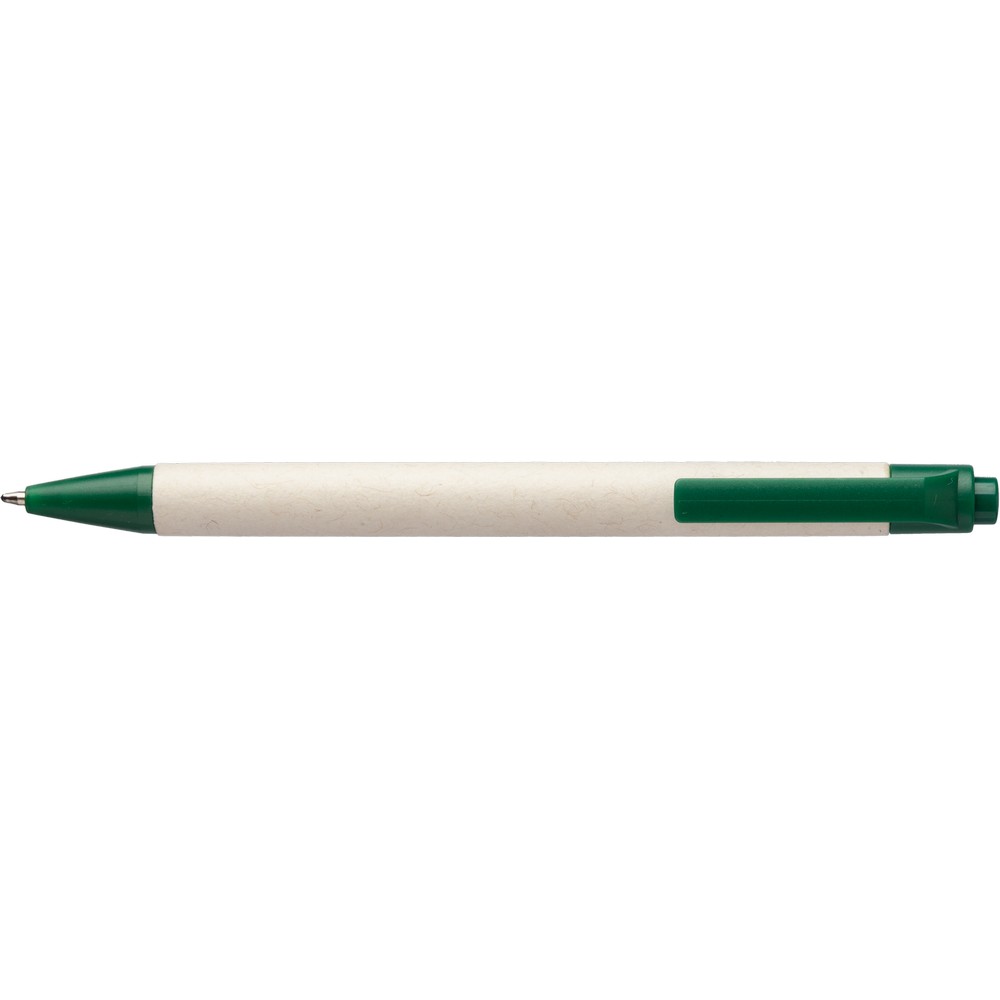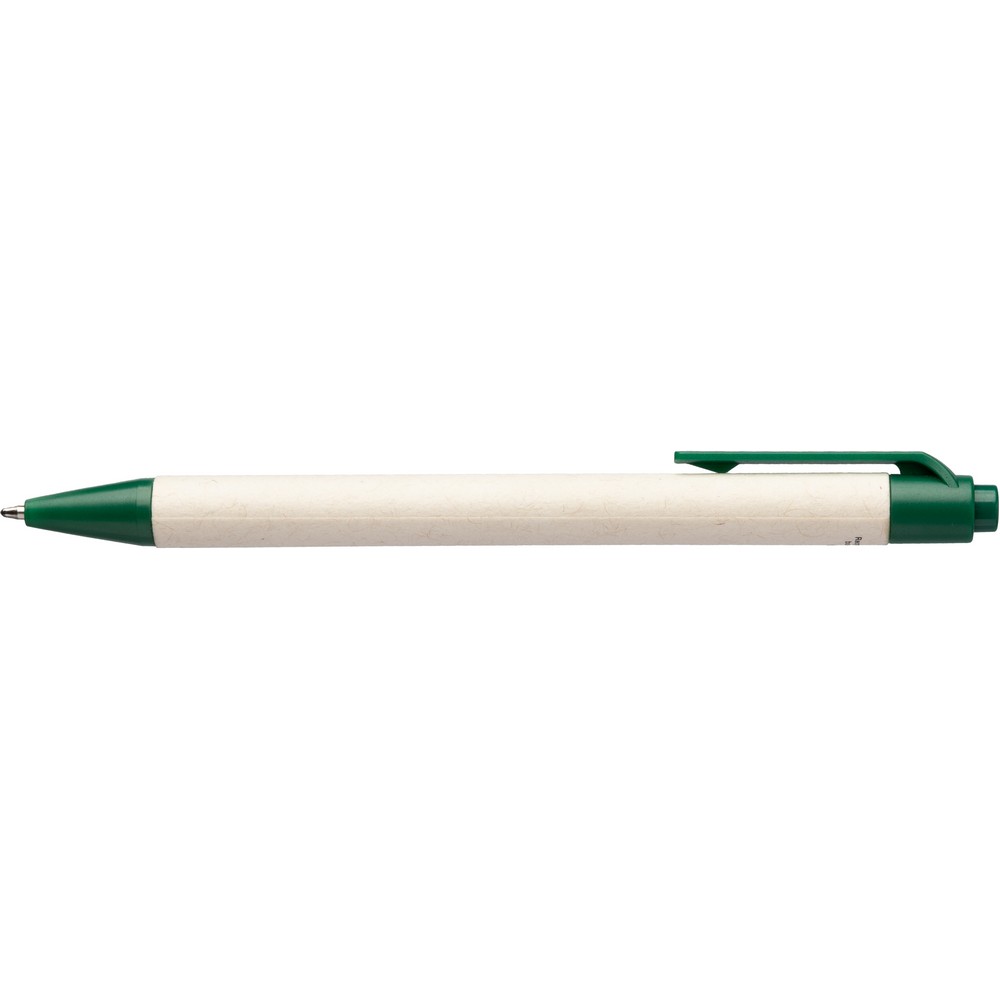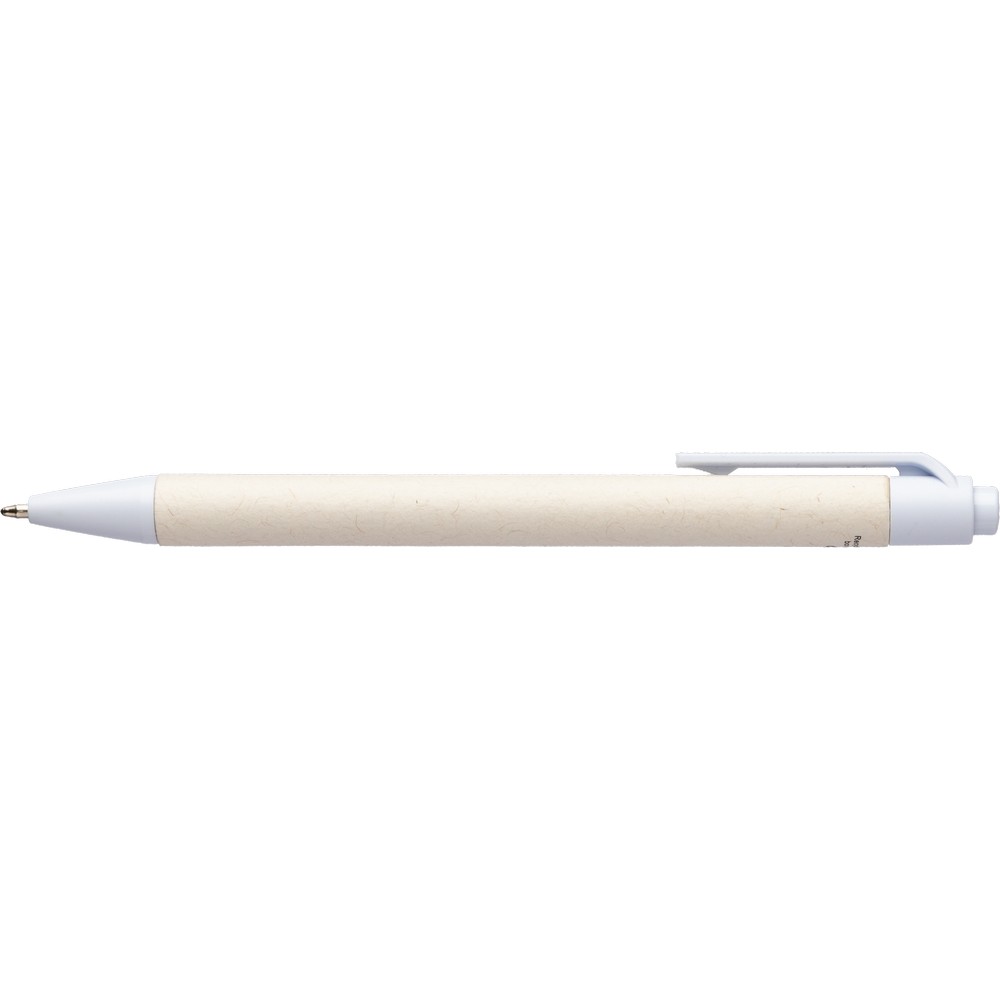 Długopis z kolorowym klipem, można go przyczepić do notatnika lub koszuli, ikona ABS z recyklingu na produkcie, wyróżnia go nietypowy materiał wykonania, produkt wykonany z kartonika po mleku z recyklingu i ABS