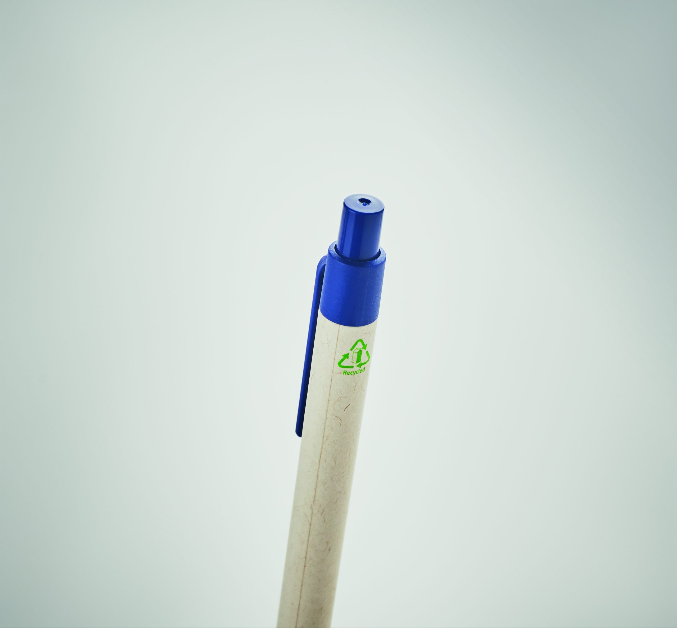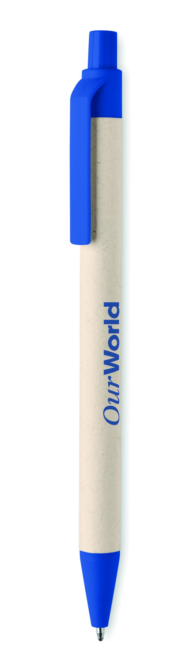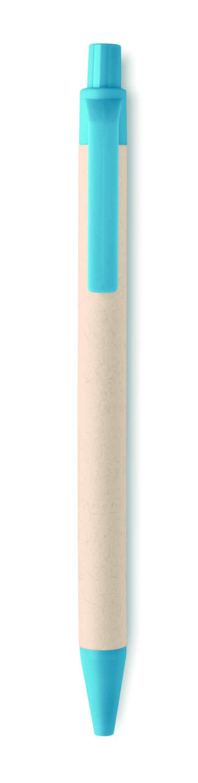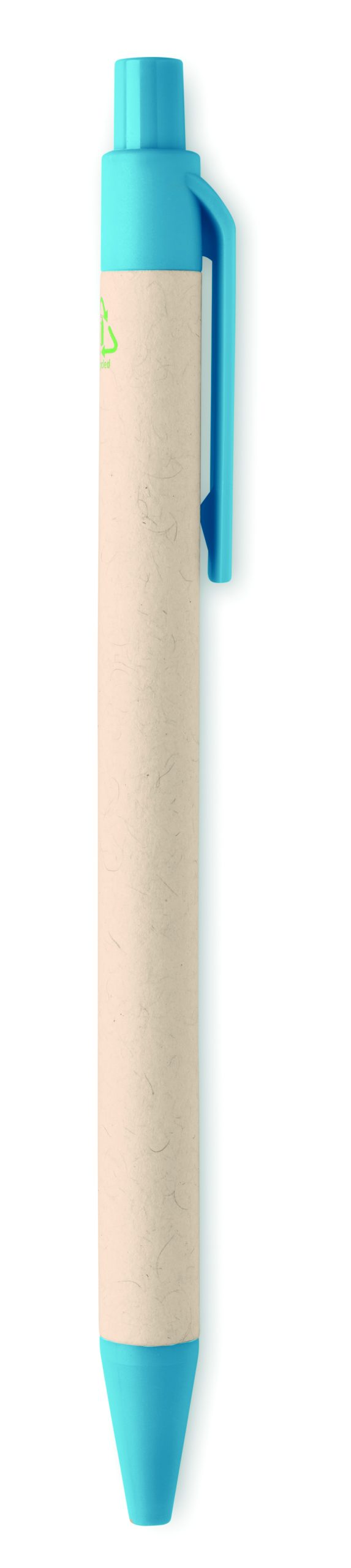 Przyciskany długopis z korpusem wykonanym z kartonów po mleku pochodzących z recyklingu i z elementami z PLA (w 100% biodegradowalnej kukurydzy). Niebieski tusz.