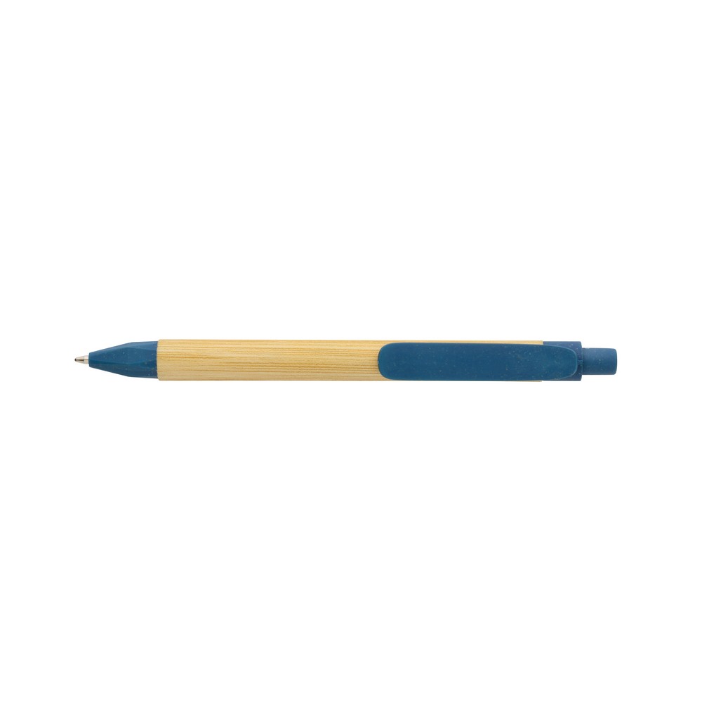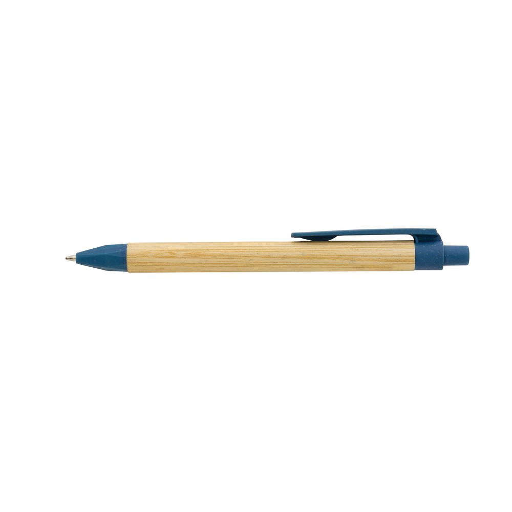 Długopis, wykonany z papieru z recyklingu, bambusowy wzór na trzonie, klip ze słomy pszenicznej, niemiecki wkład Dokumental® w kolorze niebieskim w komplecie, długość pisania ok. 1000 m, kulka TC zapewnia wygodne pisanie, ślad węglowy produktu: 0,03 kg CO2
