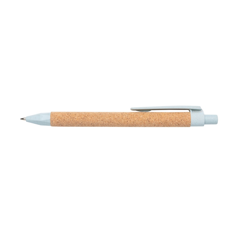 Długopis z recyklingu, wykonany ze słomy pszenicznej z dodatkiem korka, niemiecki wkład Dokumental® w kolorze niebieskim w komplecie, długość pisania ok. 1200 m, kulka TC zapewnia wygodne pisanie, ślad węglowy produktu: 0,03 kg CO2