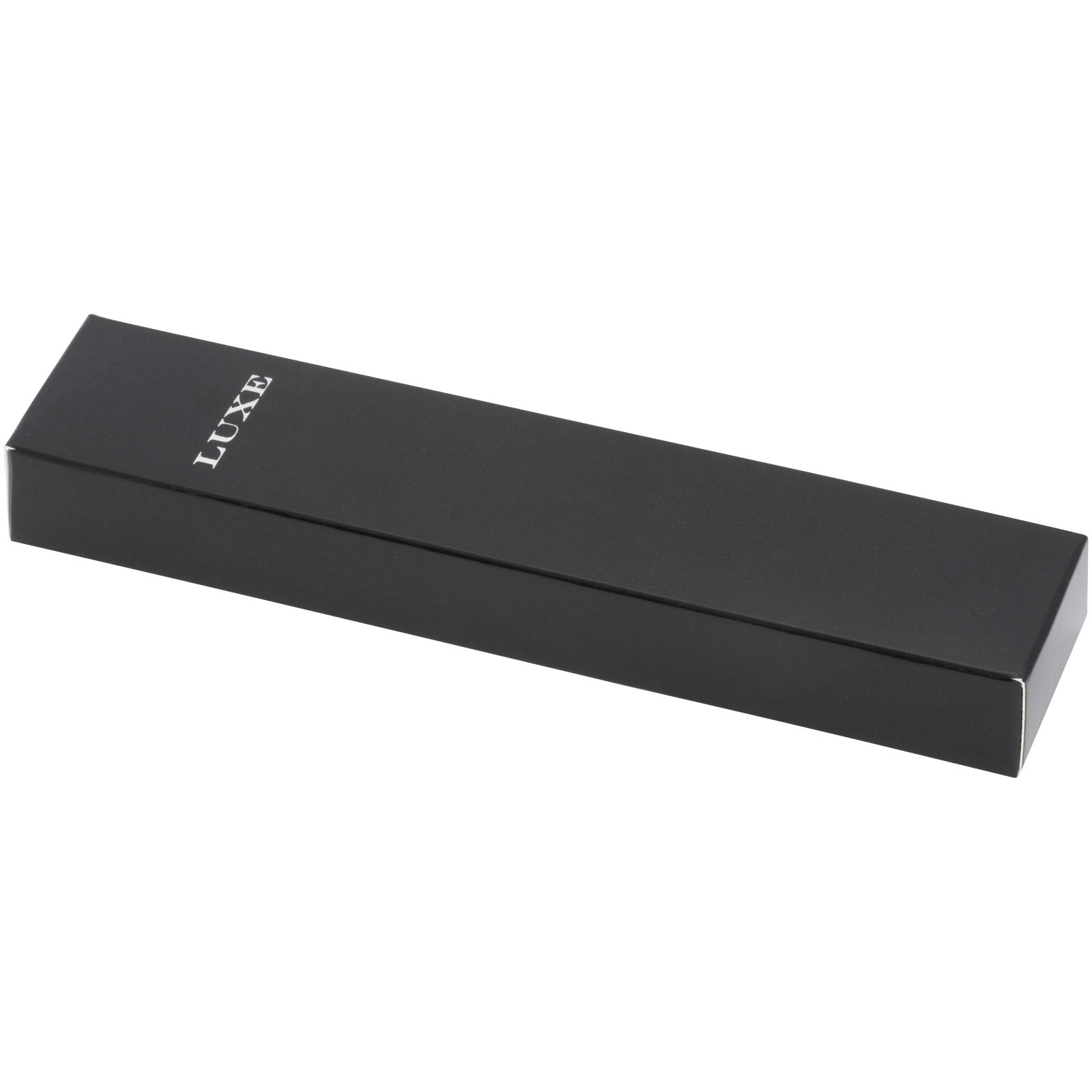 Elegancki długopis ze stylusem, obrotowy mechanizm wysuwania końcówki, z aksamitnym etui. Zapakowany w pudełko upominkowe „LUXE” (rozmiar: 17 x 3,5 x 2 cm).