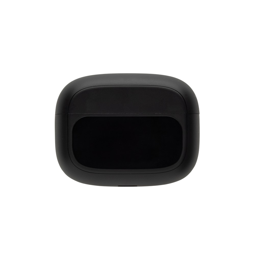 Bezprzewodowe słuchawki douszne z systemem aktywnej redukcji szumów (ANC), poziom redukcji szumów do 23 dB, BT 5.3, posiadają wbudowany ekran dotykowy TFT, który oferuje funkcje takie jak: przełączanie utworów, odbieranie połączeń, regulacja poziomu głośności i wiele innych, wodoodporne IPX4, wbudowany mikrofon, funkcja odbierania połączeń, do 6 godzin odtwarzania na jednym ładowaniu, ponowne naładowanie w etui ładującym w 1,5h, wykonane z ABS z recyklingu z certyfikatem RCS, w komplecie 3 pary nakładek w różnych rozmiarach, całkowita zawartość materiałów z recyklingu obliczona na podstawie wagi całkowitej przedmiotu: 43%, w pudełku z papieru kraftowego z certyfikatem FSC®