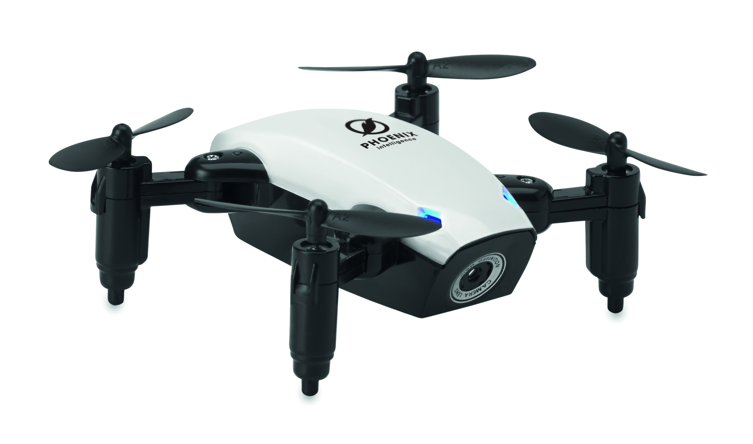 Składany dron Wifi, zawiera aparat do robienia zdjęć i filmów. Jest dostarczany z pilotem i można go ładować. Sterowanie możliwe za pomocą urządzenia mobilnego i aplikacji. 2 baterie AAA niedołączone. Akumulator litowo-jonowy 300 mAh.