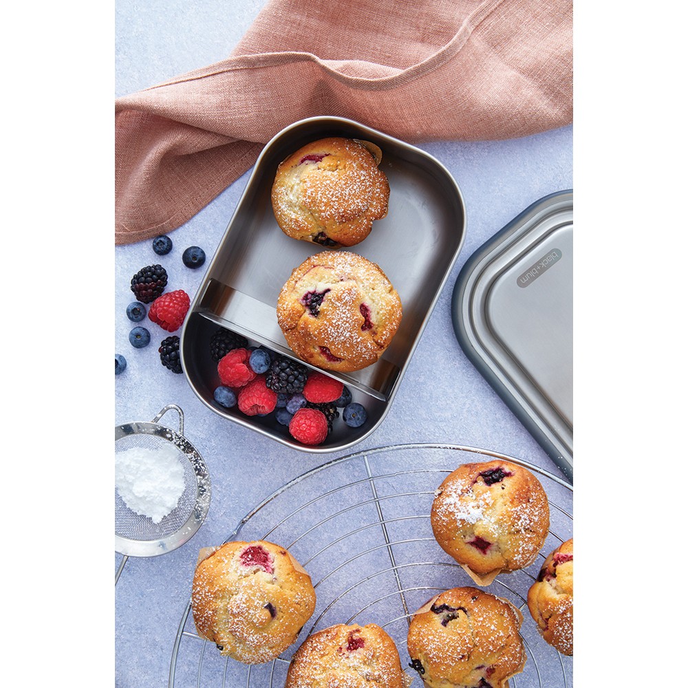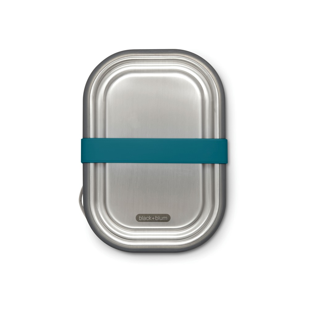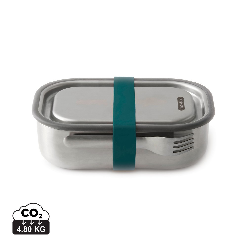 Pudełko śniadaniowe 1 L, lunchbox 3 w 1, nadaje się do przechowywania śniadania, mrożenia potraw oraz pieczenia w piekarniku, wykonane ze stali nierdzewnej z recyklingu, w komplecie łyżkowidelec, elastyczny pasek oraz przesuwana przegroda, podstawka oraz łyżkowidelec nadają się do mycia w zmywarce