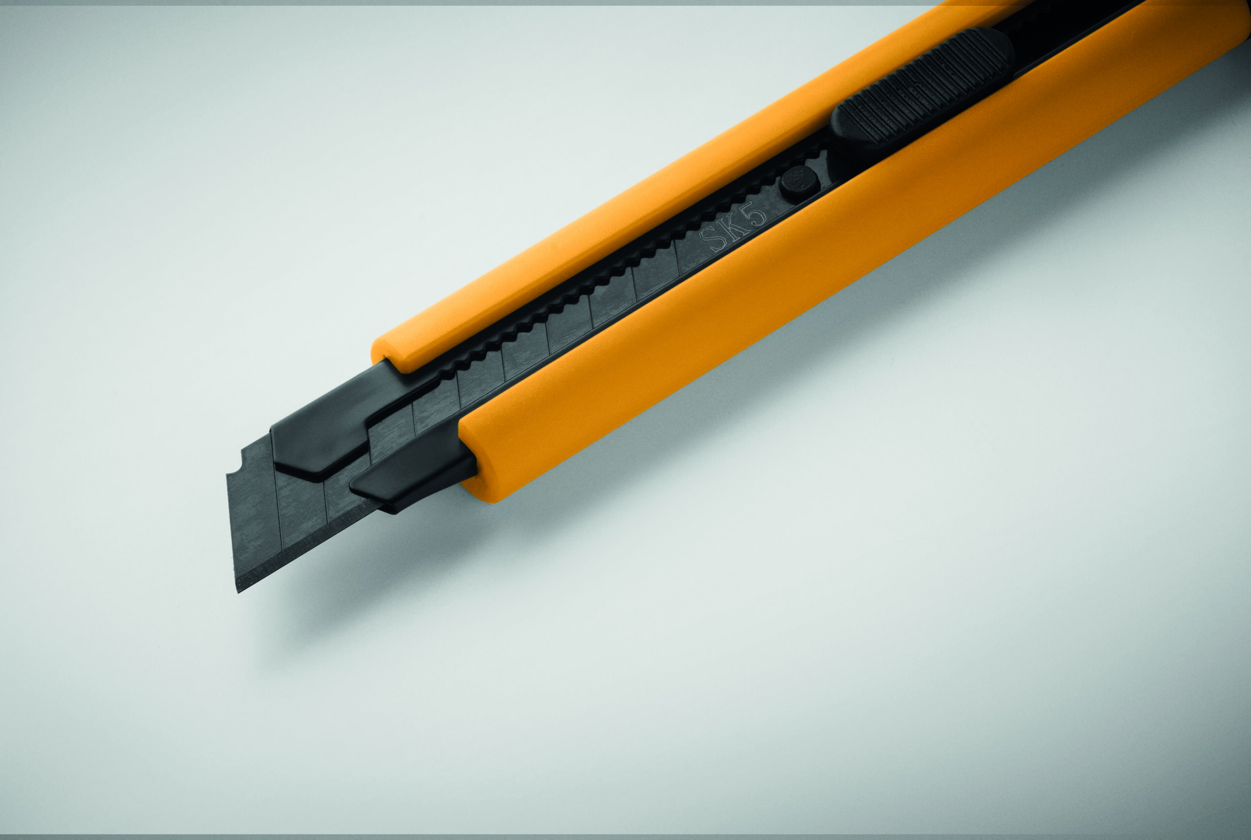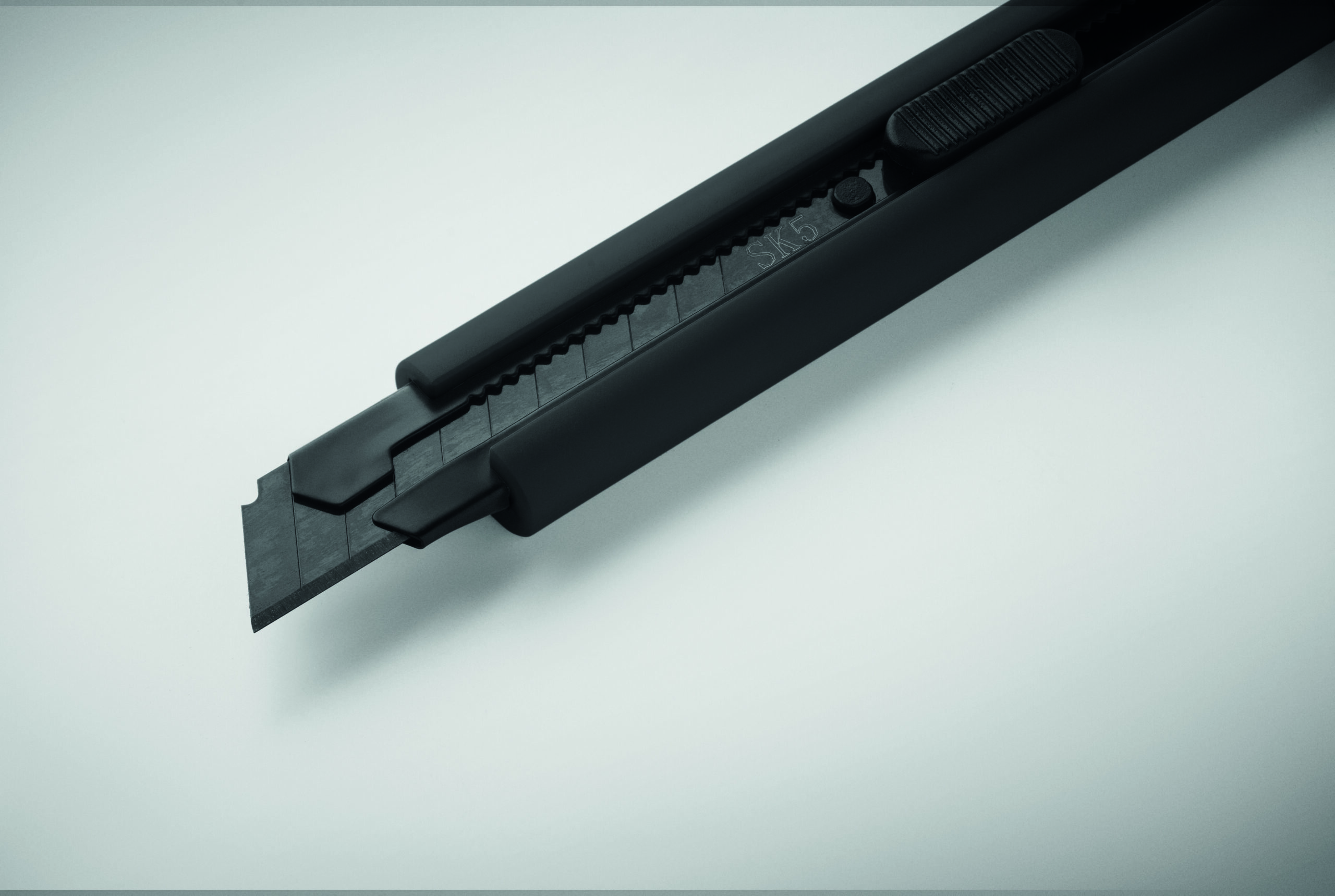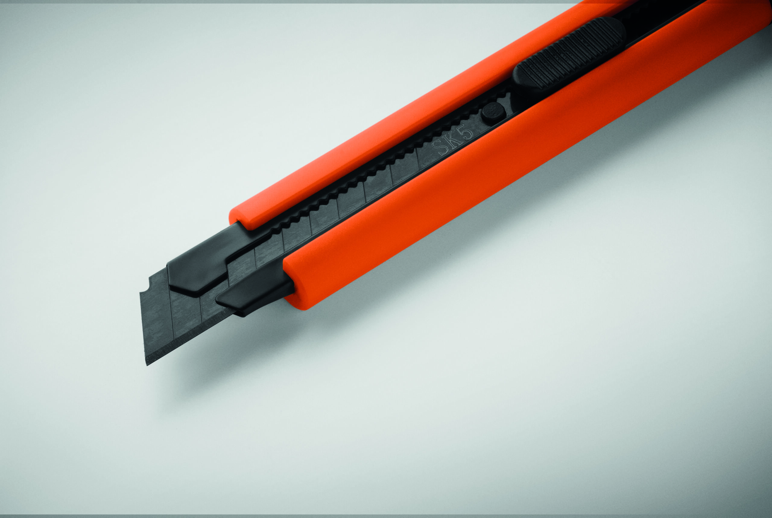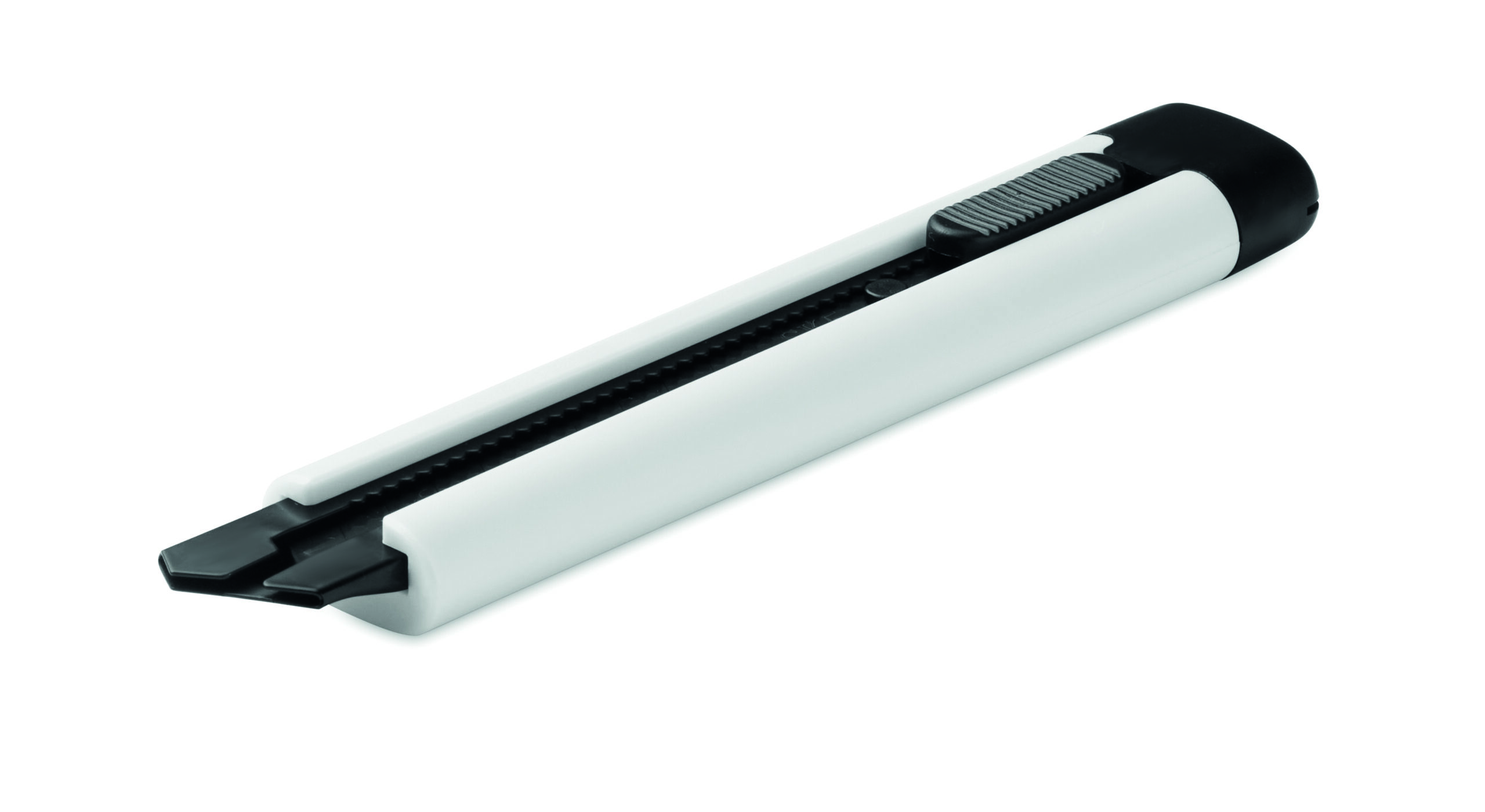 Wysuwany nóż z obudową ABS i ostrzem ze stali węglowej. Zawiera dwa dodatkowe wymienne ostrza do dłuższego użytkowania.