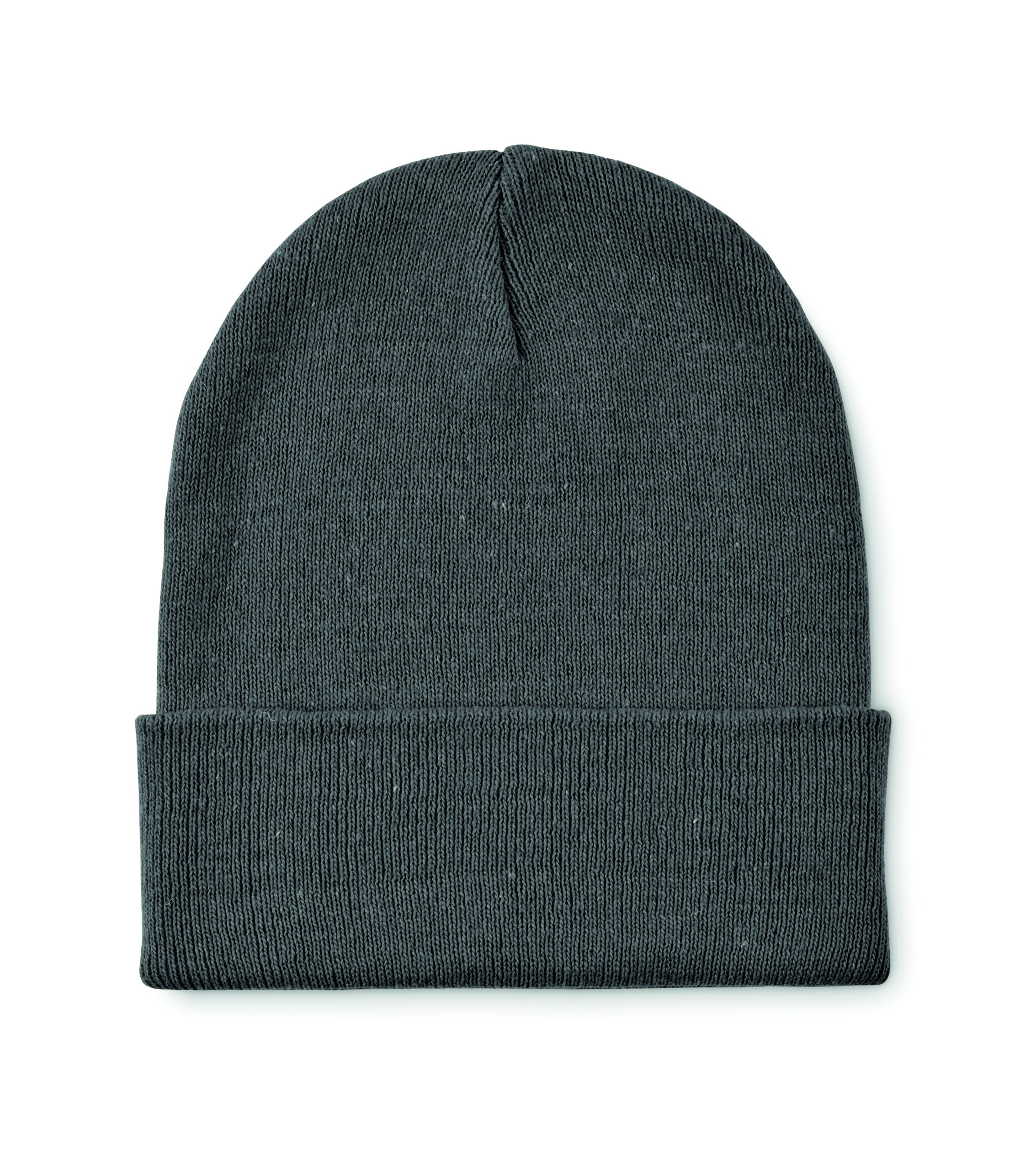 Dzianinowa czapka unisex z miękkiego, rozciągliwego poliestru (64%) i akrylu (36%) z wywijanym mankietem. Rozciągliwy, uniwersalny krój.