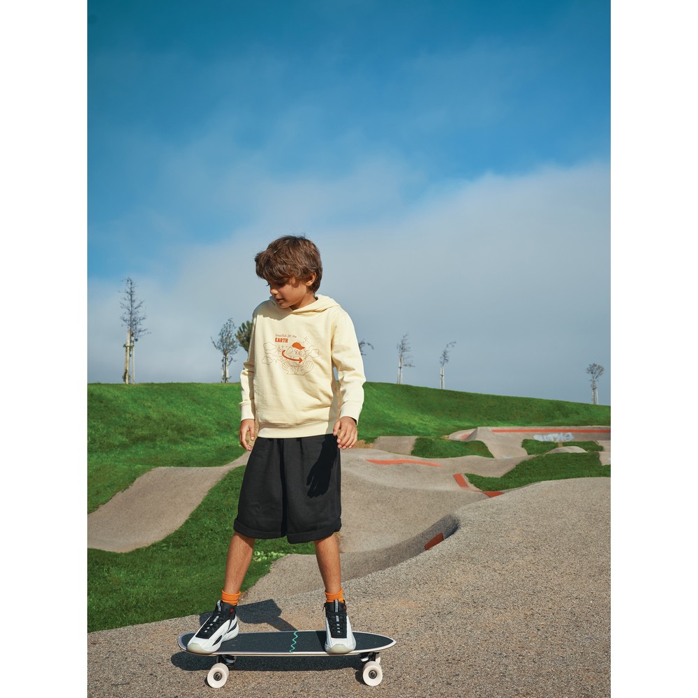 Bluza z kapturem i kieszeniami, dziecięca, dwuwarstwowy kaptur, krój modern, ściągacze, wykonana w 30% z bawełny z recyklingu i w 70% z bawełny organicznej o gramaturze 290 g/m2, bez dodatku poliestru, posiada wbudowany znacznik AWARE™, który potwierdza wykorzystanie materiałów z recyklingu, posiada kod QR na metce, który prowadzi do cyfrowego paszportu produktu, 2% wpływów z każdego sprzedanego produktu jest przekazywane na rzecz Water.org