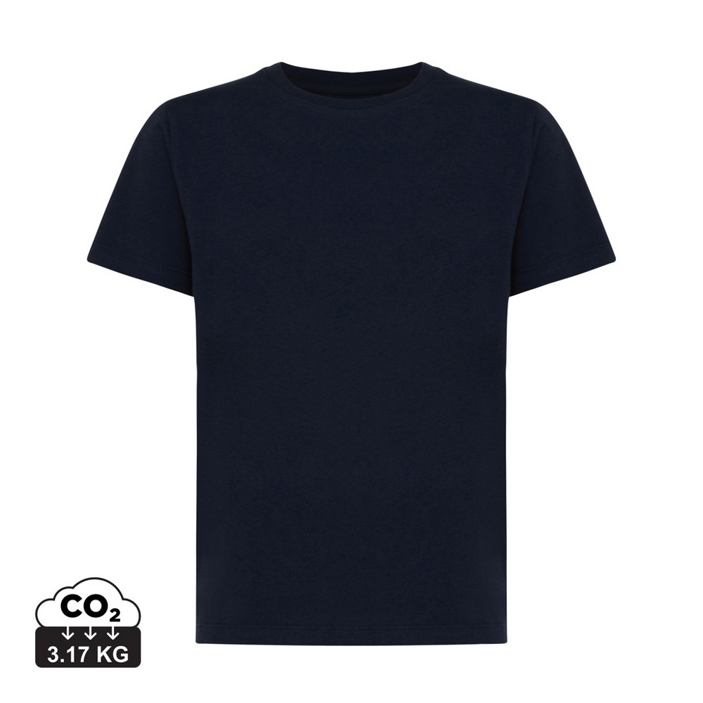 Koszulka dziecięca, regularny krój, okrągły dekolt, krótkie rękawy, wykonana w 30% z bawełny z recyklingu i w 70% z bawełny organicznej o gramaturze 160 g/m2, posiada wbudowany znacznik AWARE™, który potwierdza wykorzystanie materiałów z recyklingu, posiada kod QR na metce, który prowadzi do cyfrowego paszportu produktu, 2% wpływów z każdego sprzedanego produktu z kolekcji Impact jest przekazywane na rzecz Water.org, ślad węglowy produktu: 3,17 kg CO2