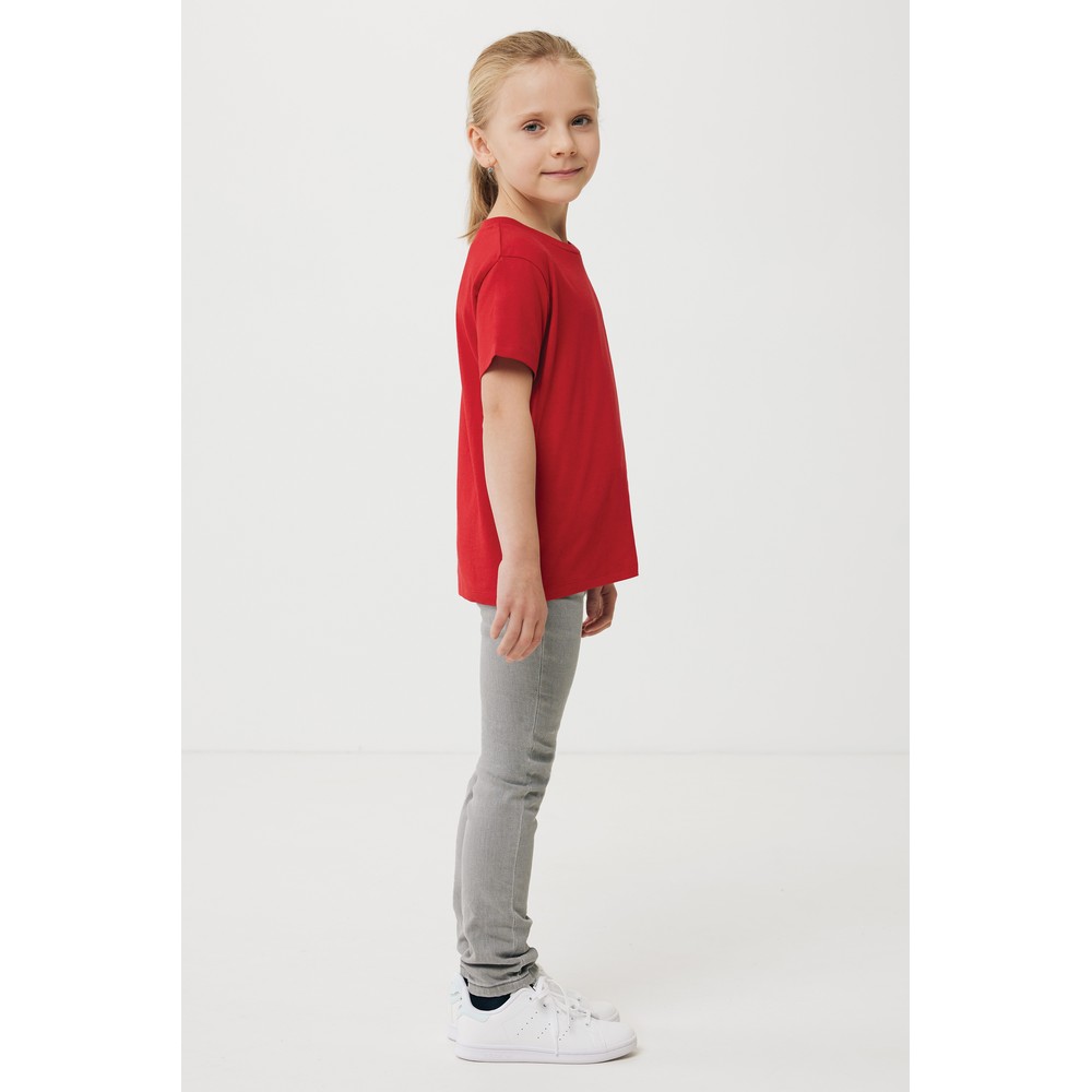 Koszulka dziecięca, regularny krój, okrągły dekolt, krótkie rękawy, wykonana w 30% z bawełny z recyklingu i w 70% z bawełny organicznej o gramaturze 160 g/m2, posiada wbudowany znacznik AWARE™, który potwierdza wykorzystanie materiałów z recyklingu, posiada kod QR na metce, który prowadzi do cyfrowego paszportu produktu, 2% wpływów z każdego sprzedanego produktu z kolekcji Impact jest przekazywane na rzecz Water.org, ślad węglowy produktu: 3,17 kg CO2