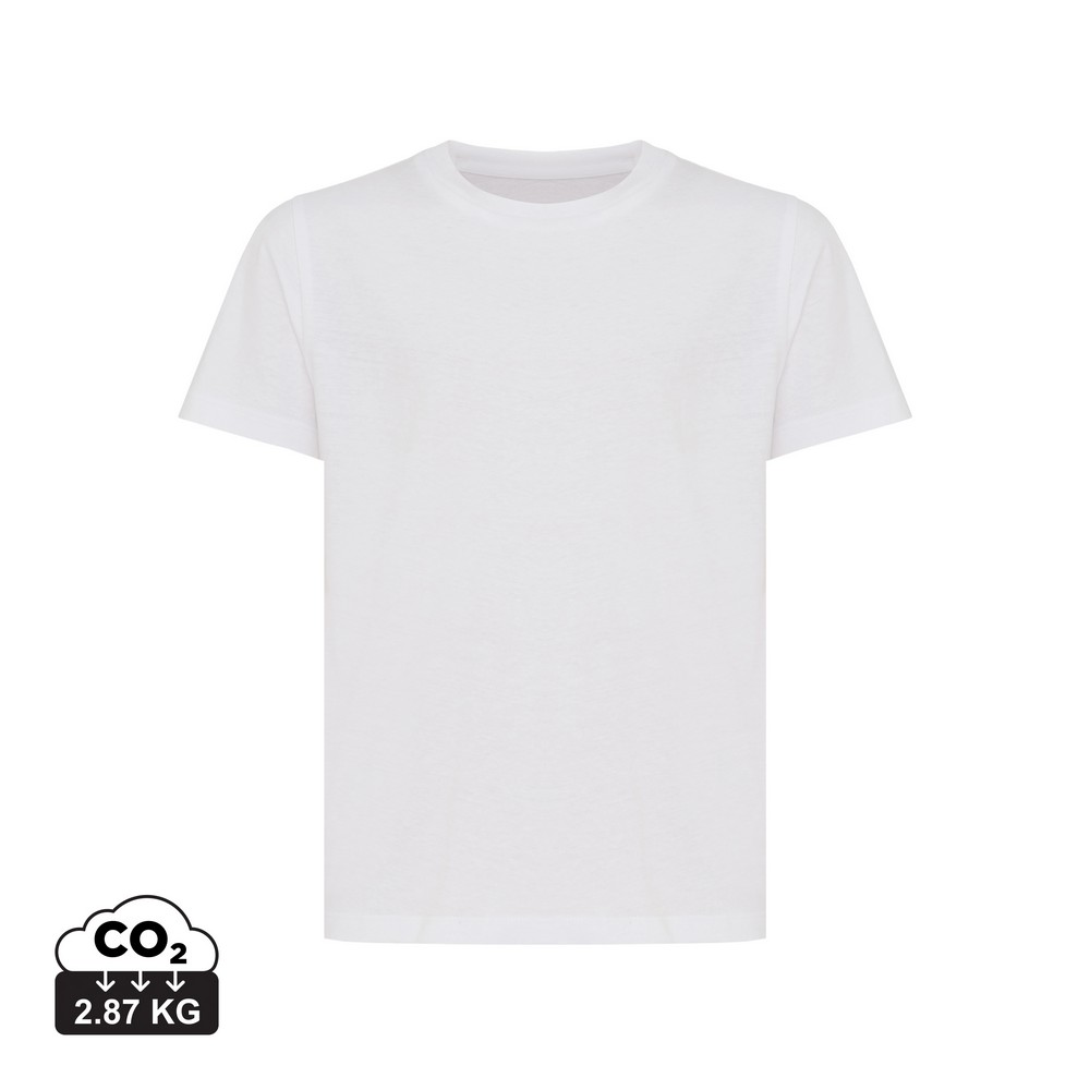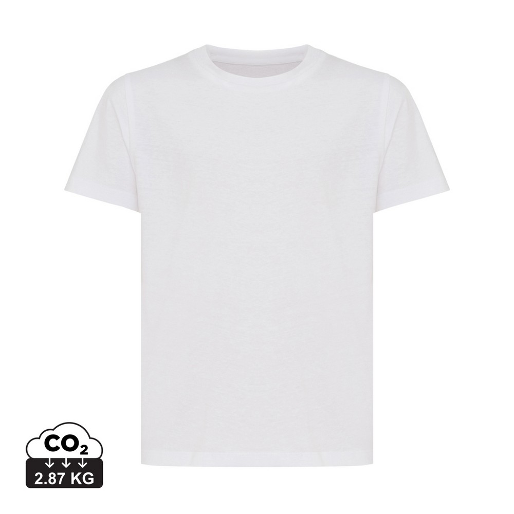 Koszulka dziecięca, regularny krój, okrągły dekolt, krótkie rękawy, wykonana w 30% z bawełny z recyklingu i w 70% z bawełny organicznej o gramaturze 160 g/m2, posiada wbudowany znacznik AWARE™, który potwierdza wykorzystanie materiałów z recyklingu, posiada kod QR na metce, który prowadzi do cyfrowego paszportu produktu, 2% wpływów z każdego sprzedanego produktu z kolekcji Impact jest przekazywane na rzecz Water.org, ślad węglowy produktu: 2,87 kg CO2