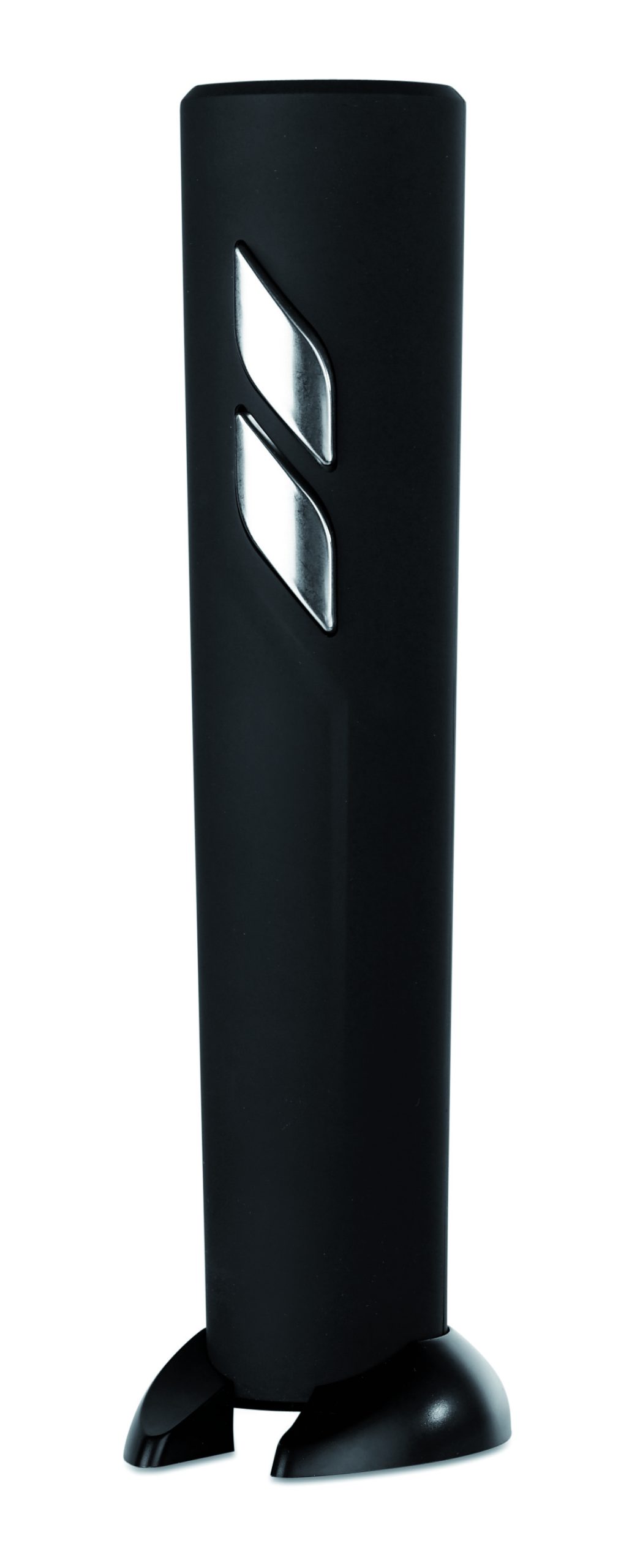 Elektryczny otwieracz do butelek, obudowa ABS, czarne matowe wykończenie. Dołączony nożyk do folii. 4 baterie nie dołączone.