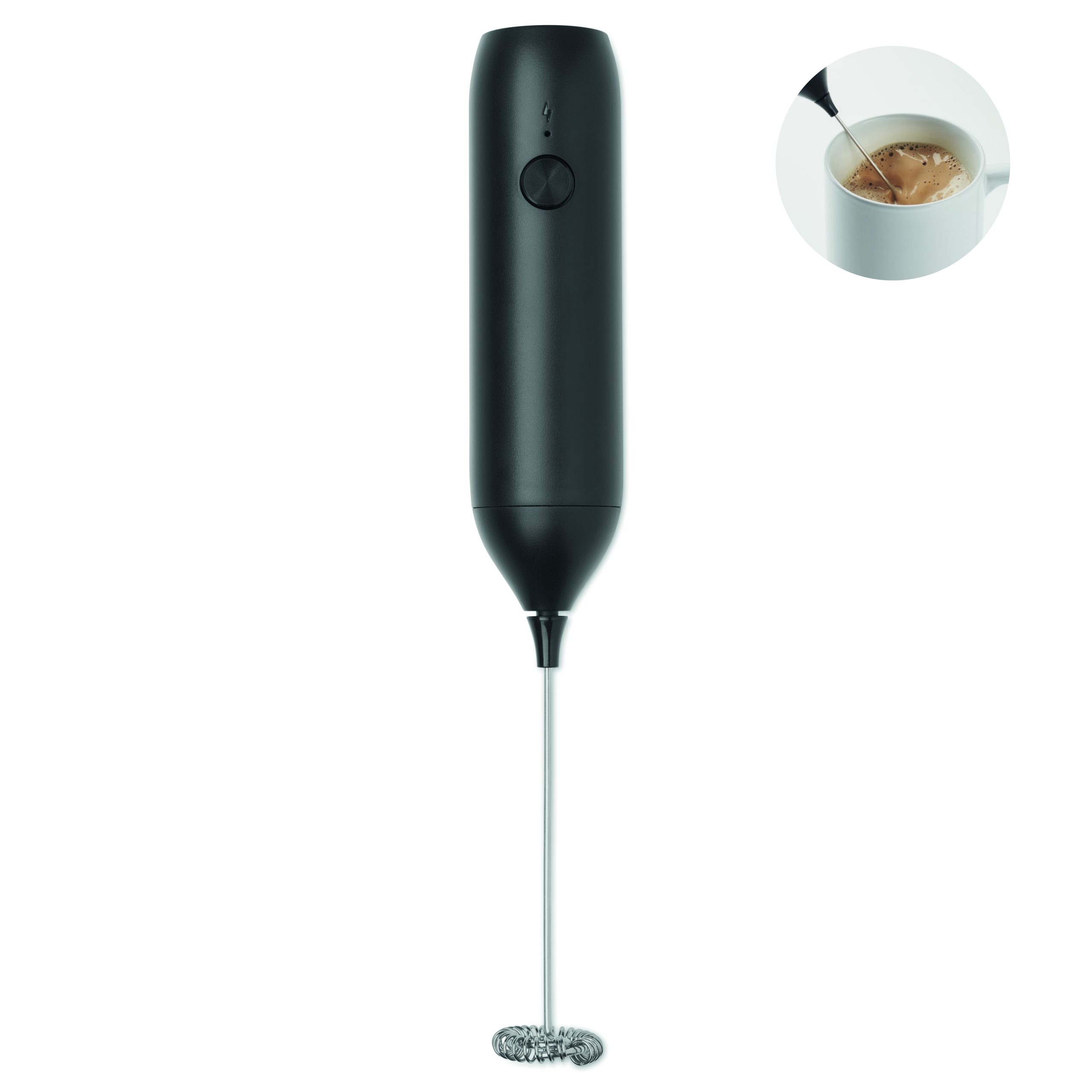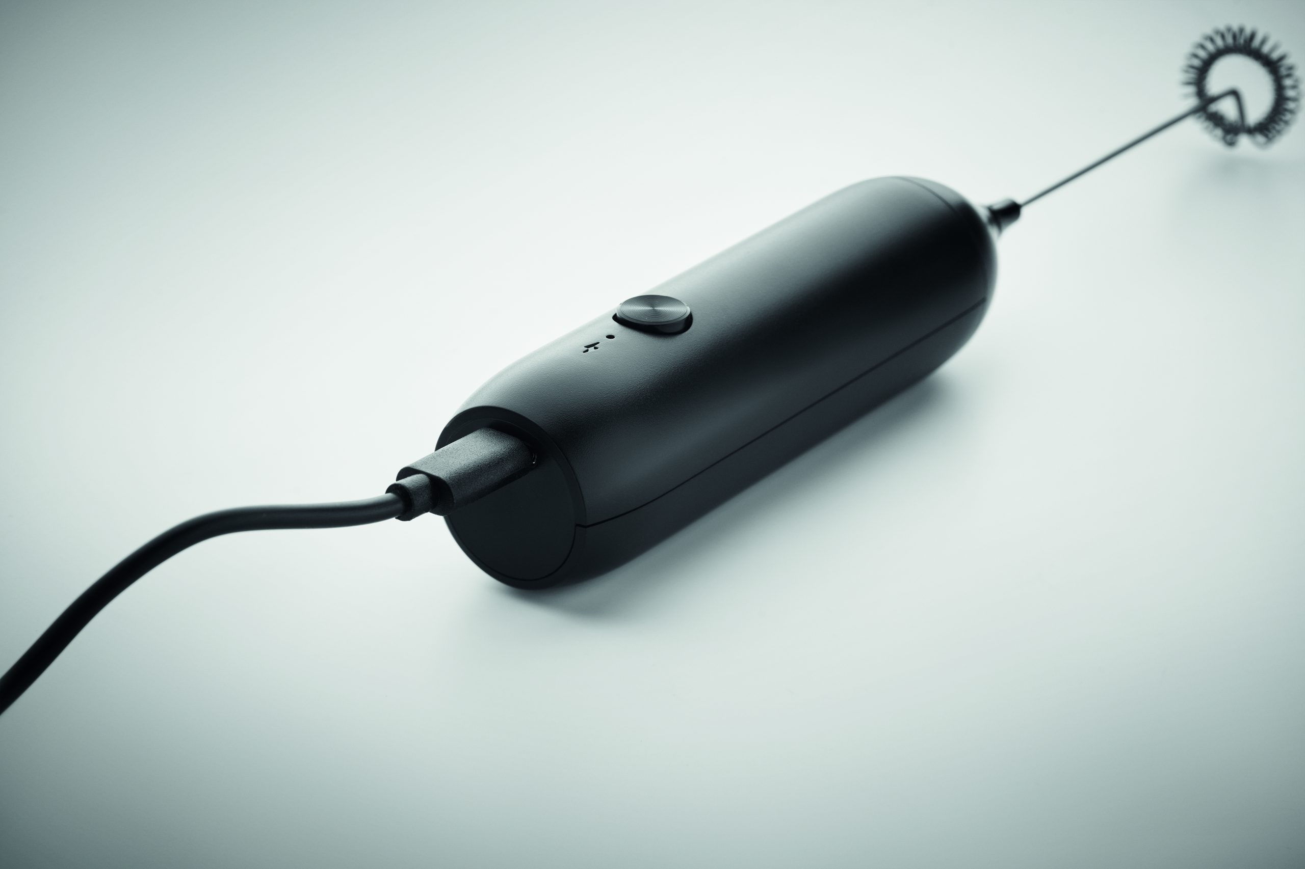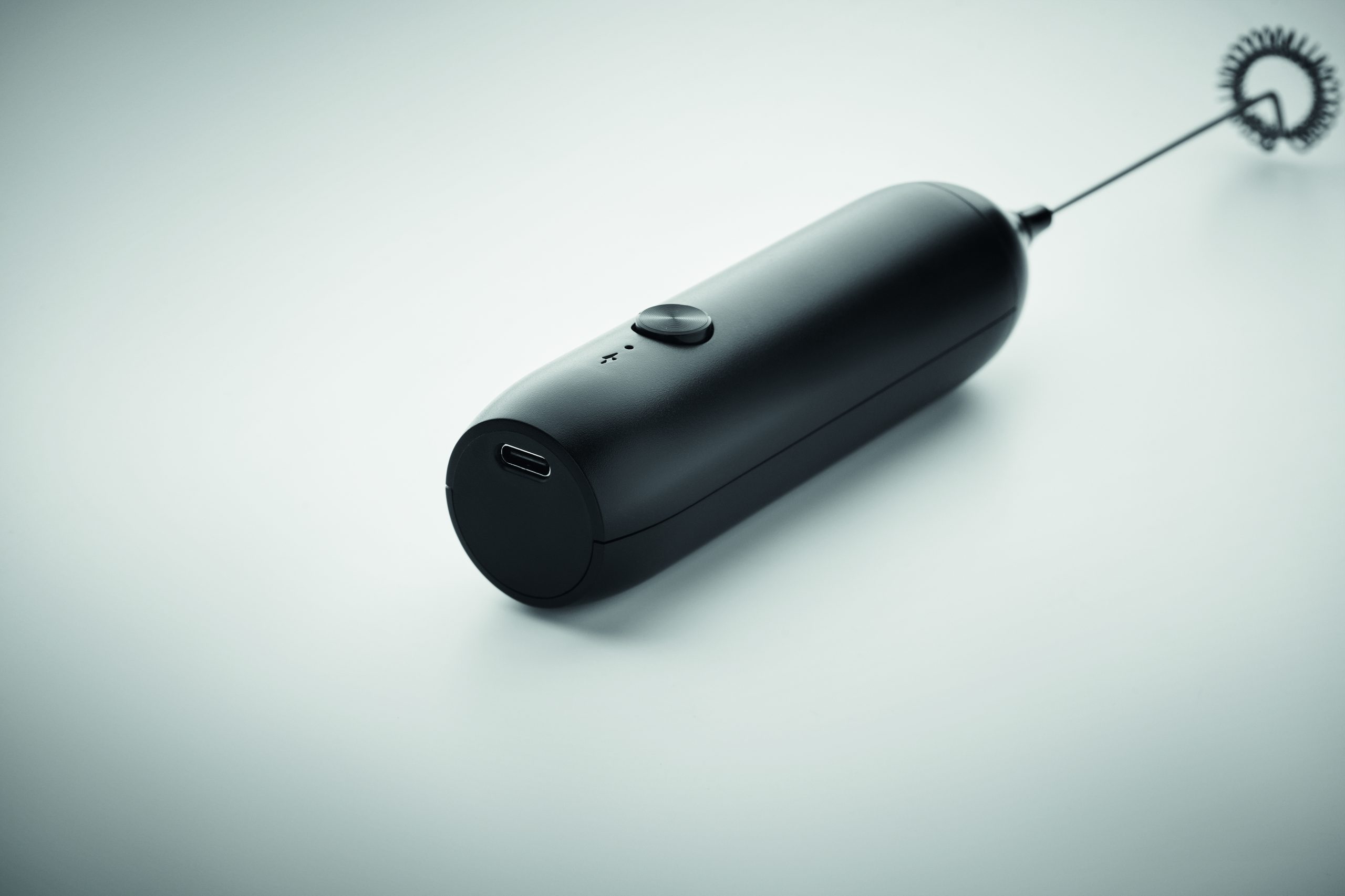 Ręczny elektryczny spieniacz do mleka z ABS z matowym wykończeniem. Wbudowany akumulator o pojemności 500 mAh. Możliwość ładowania przez USB Type-C (kabel w zestawie). Prędkość: 10 000 obr.