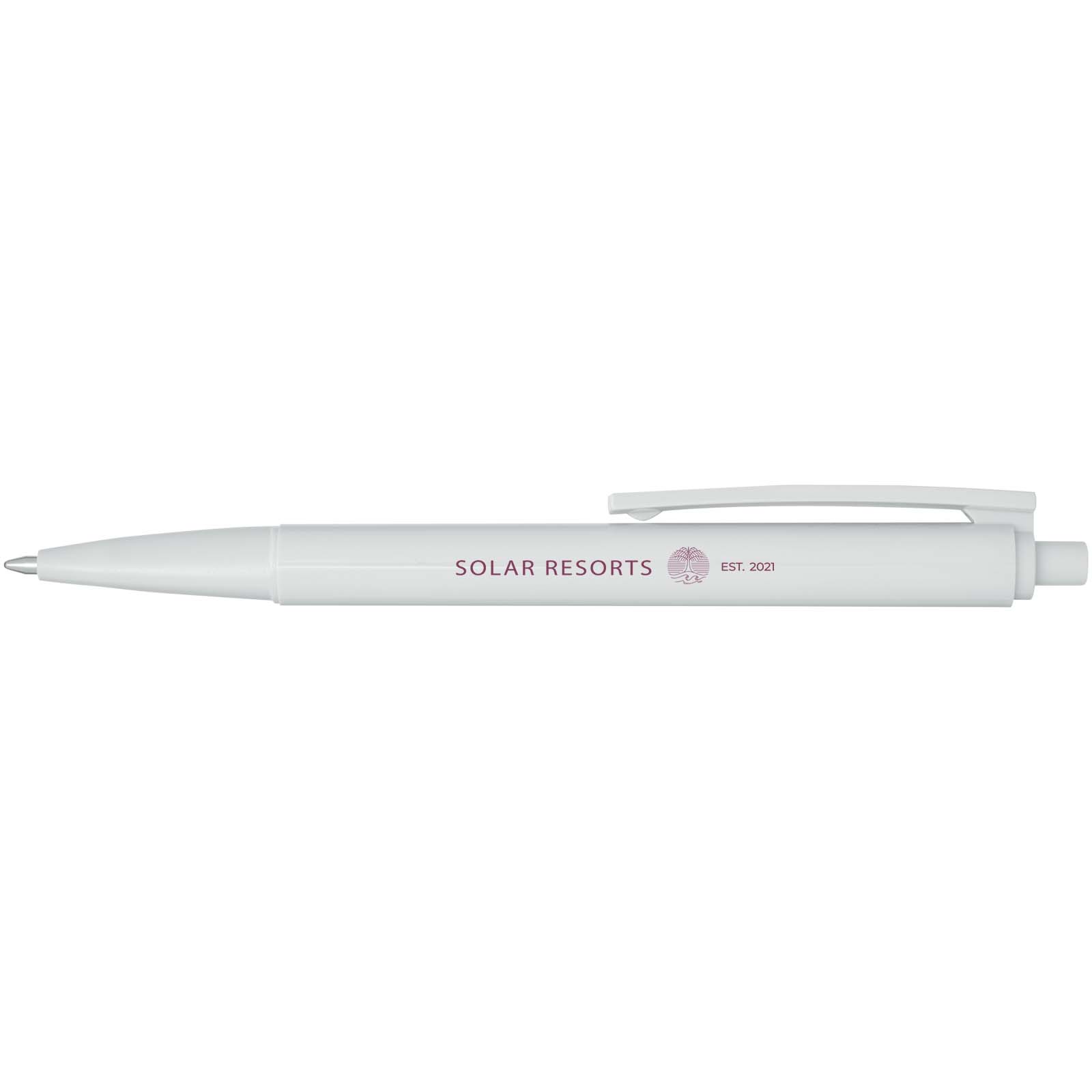 Korpus i klips długopisu Elsa wykonane są z tworzyw sztucznych pochodzących z recyklingu, a sprężyna ze stali. Kolor tuszu: Niebieski. Żywotność: 1800 metrów. Rozmiar stalówki: 1,00 mm. Wyprodukowano we Włoszech.