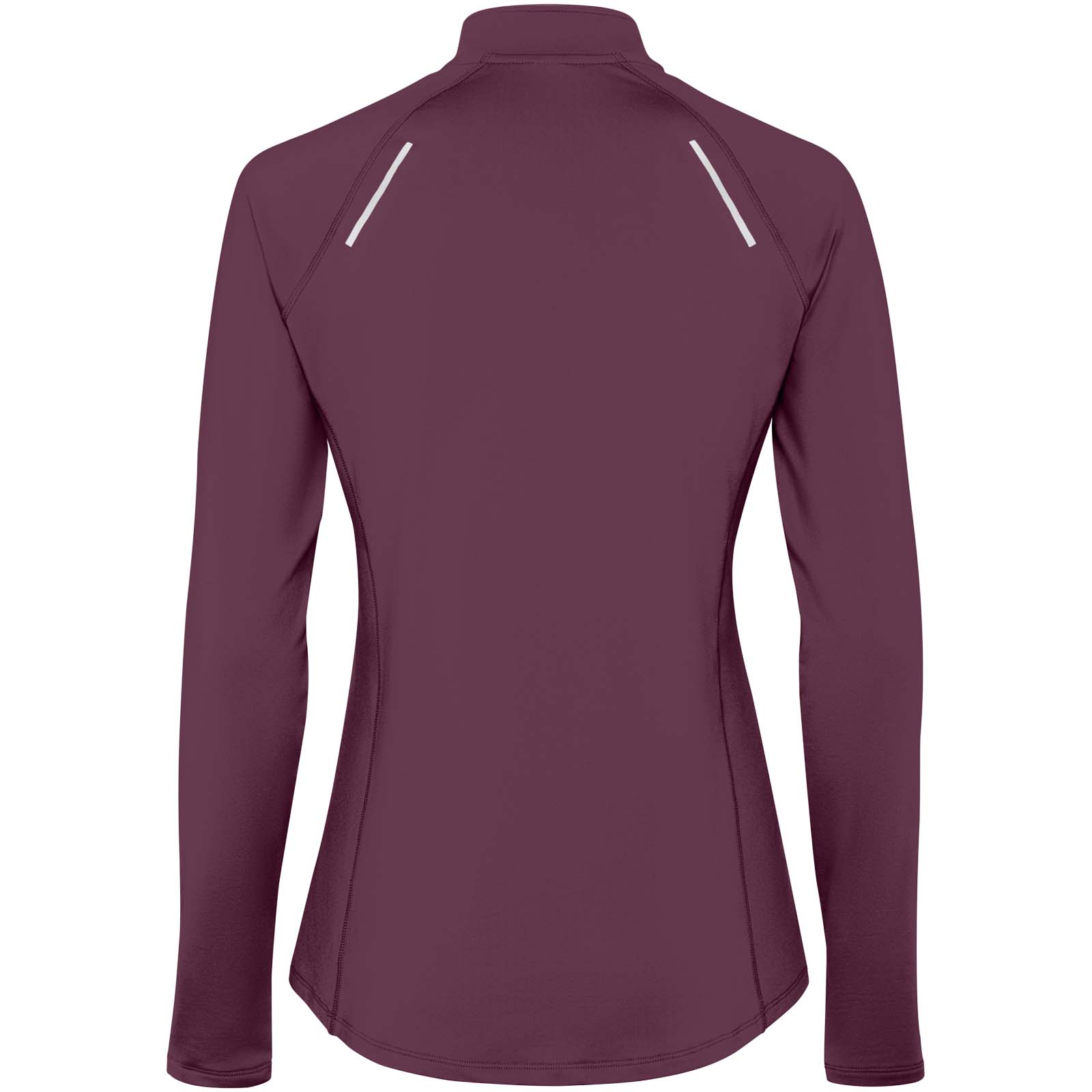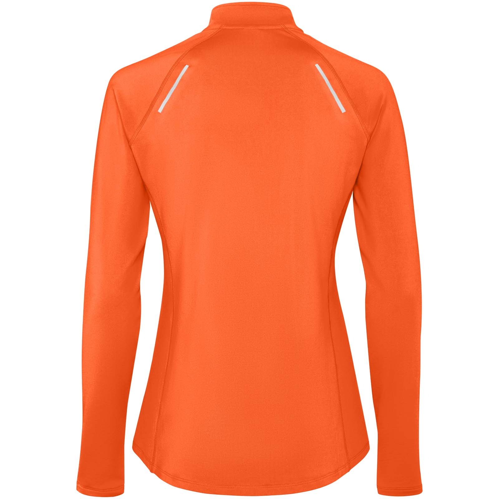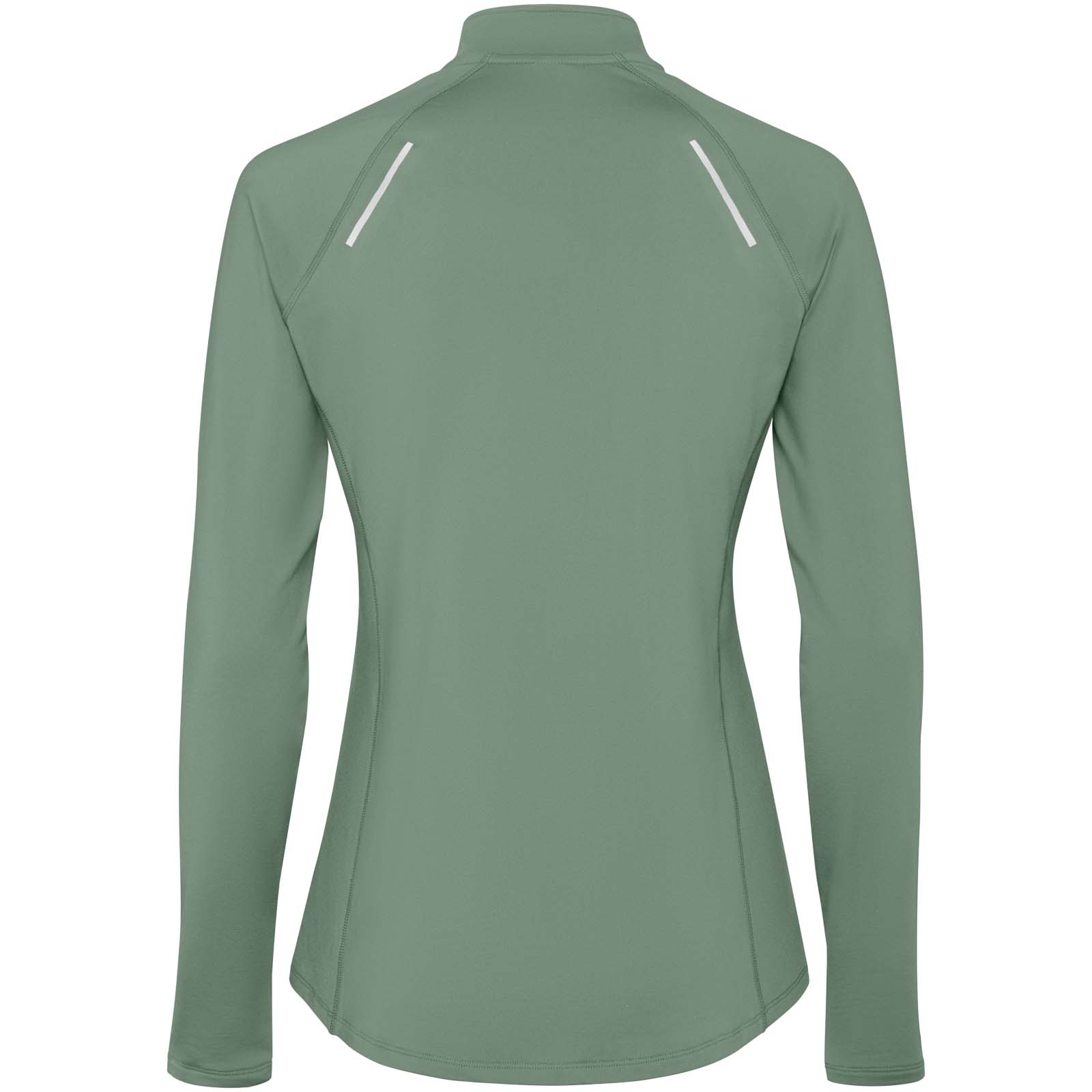 Damska techniczna bluza raglanowa z długim rękawem. Dopasowany krój. Kołnierz zapinany do połowy na zamek błyskawiczny z odblaskowymi detalami. Wzmocnione osłony szwów. Mankiety z otworami na kciuki. Odblaskowe detale na plecach. Tył nieco dłuższy niż przód. Ciepły, szczotkowany materiał wewnętrzny.