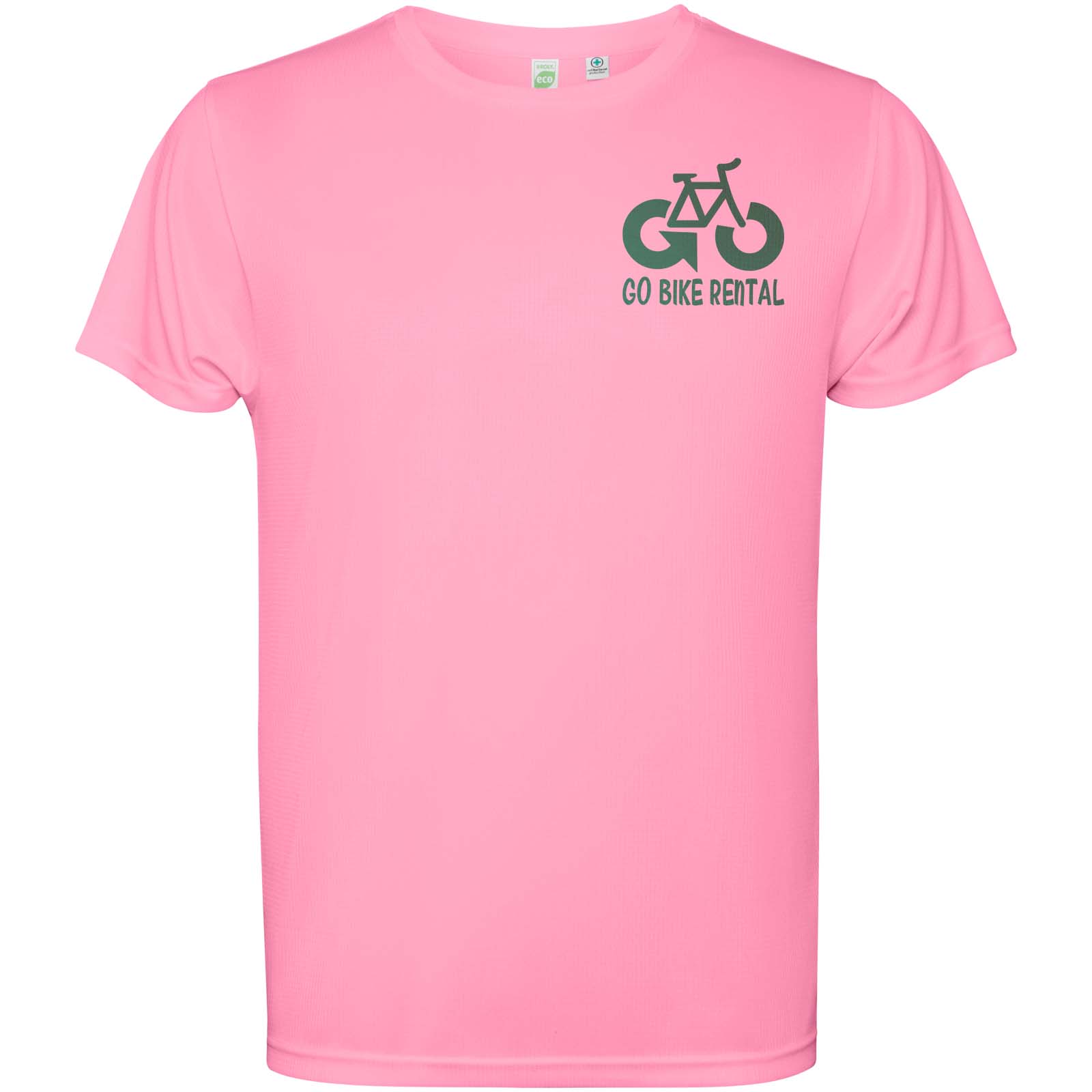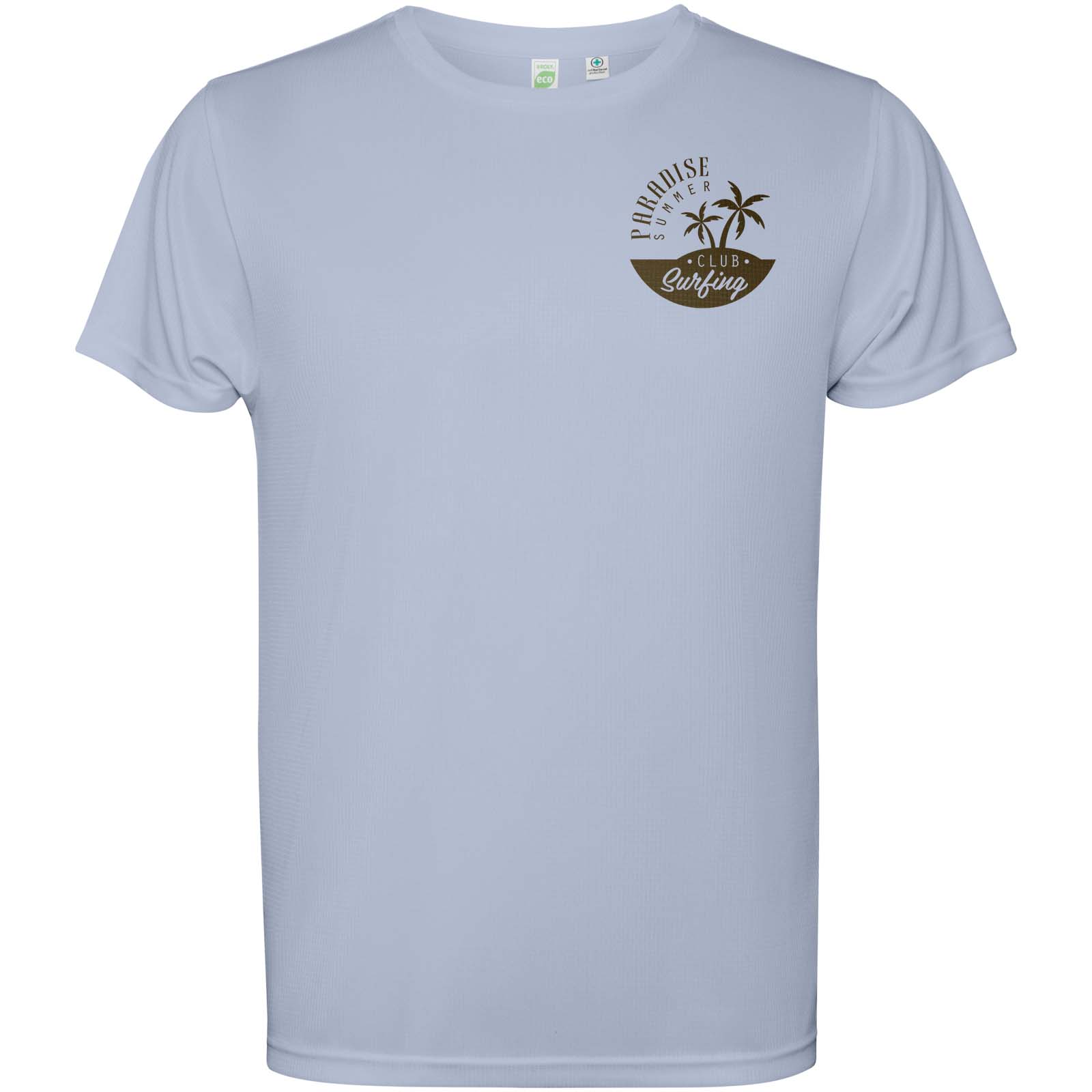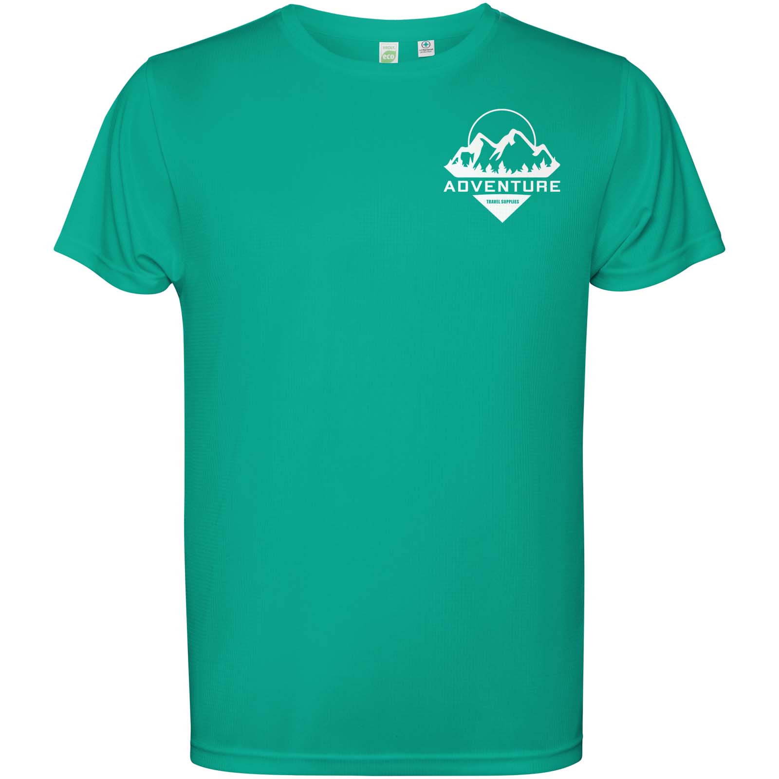 Męska koszulka techniczna z krótkim rękawem. Kołnierz z pasującymi kolorystycznie szwami. Tył nieco dłuższy niż przód. Szwy boczne przesunięte do przodu.