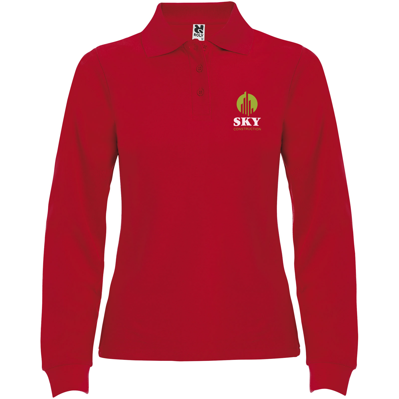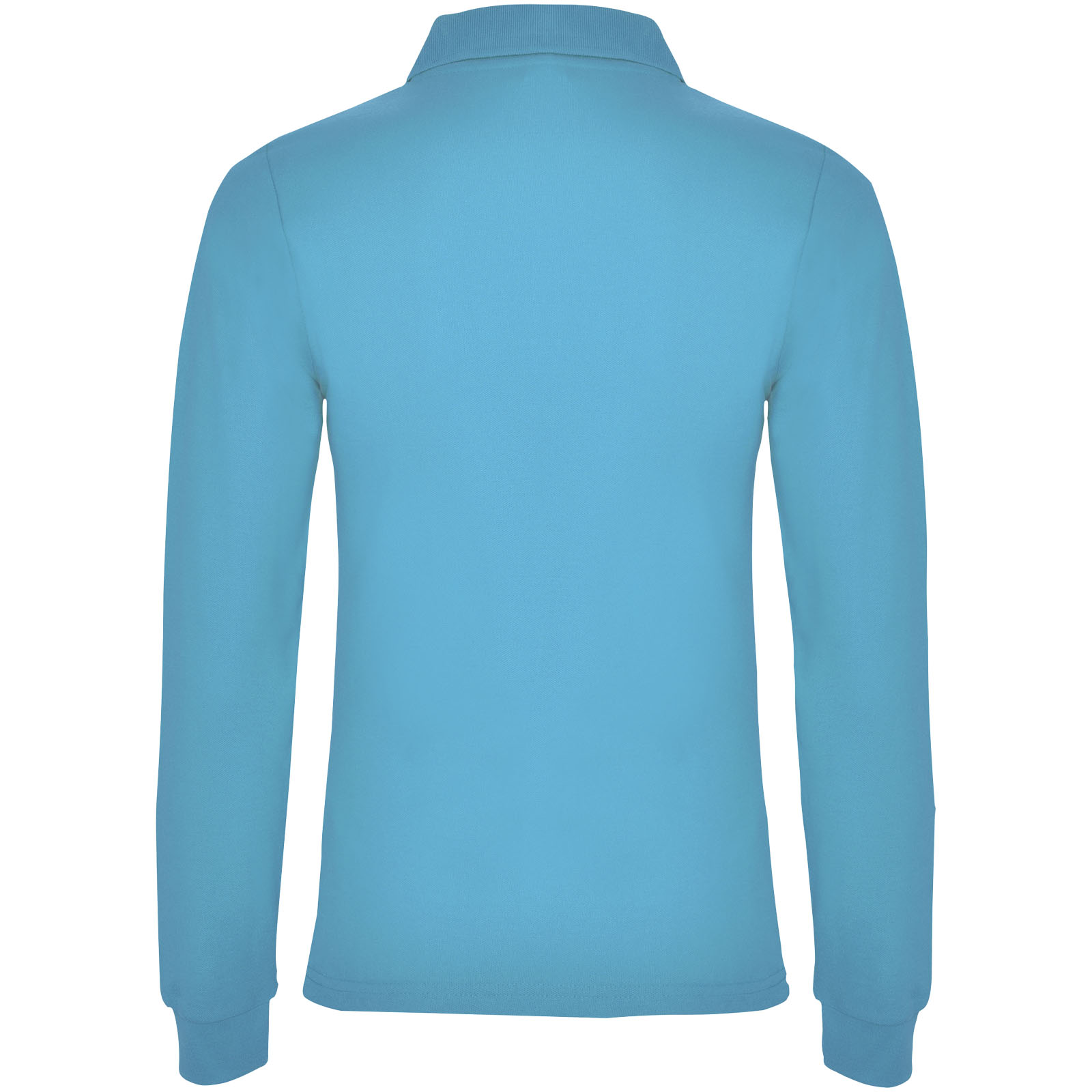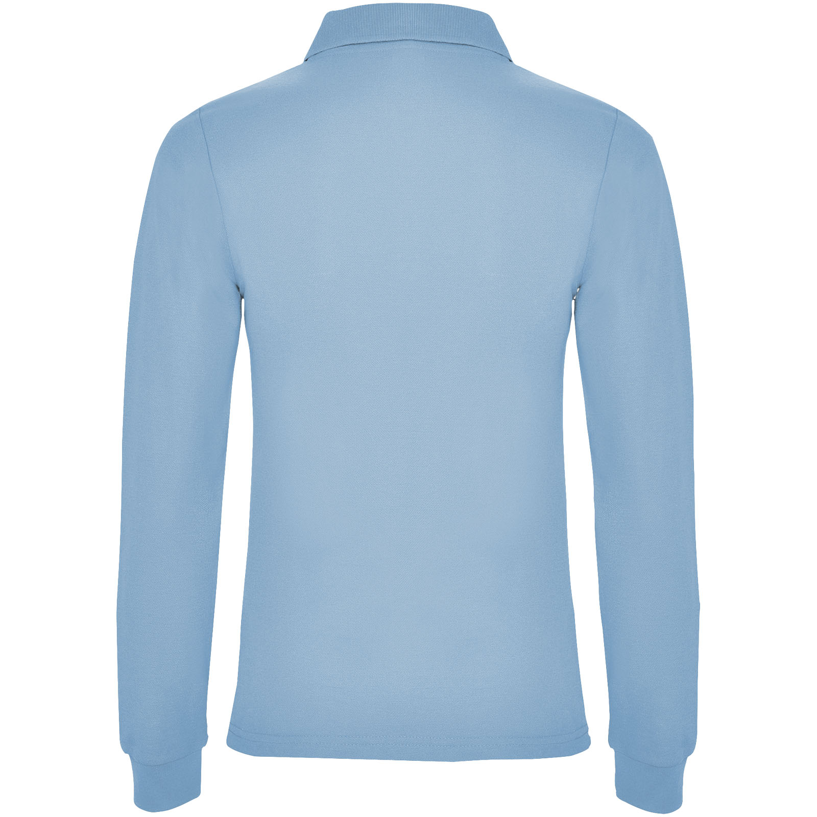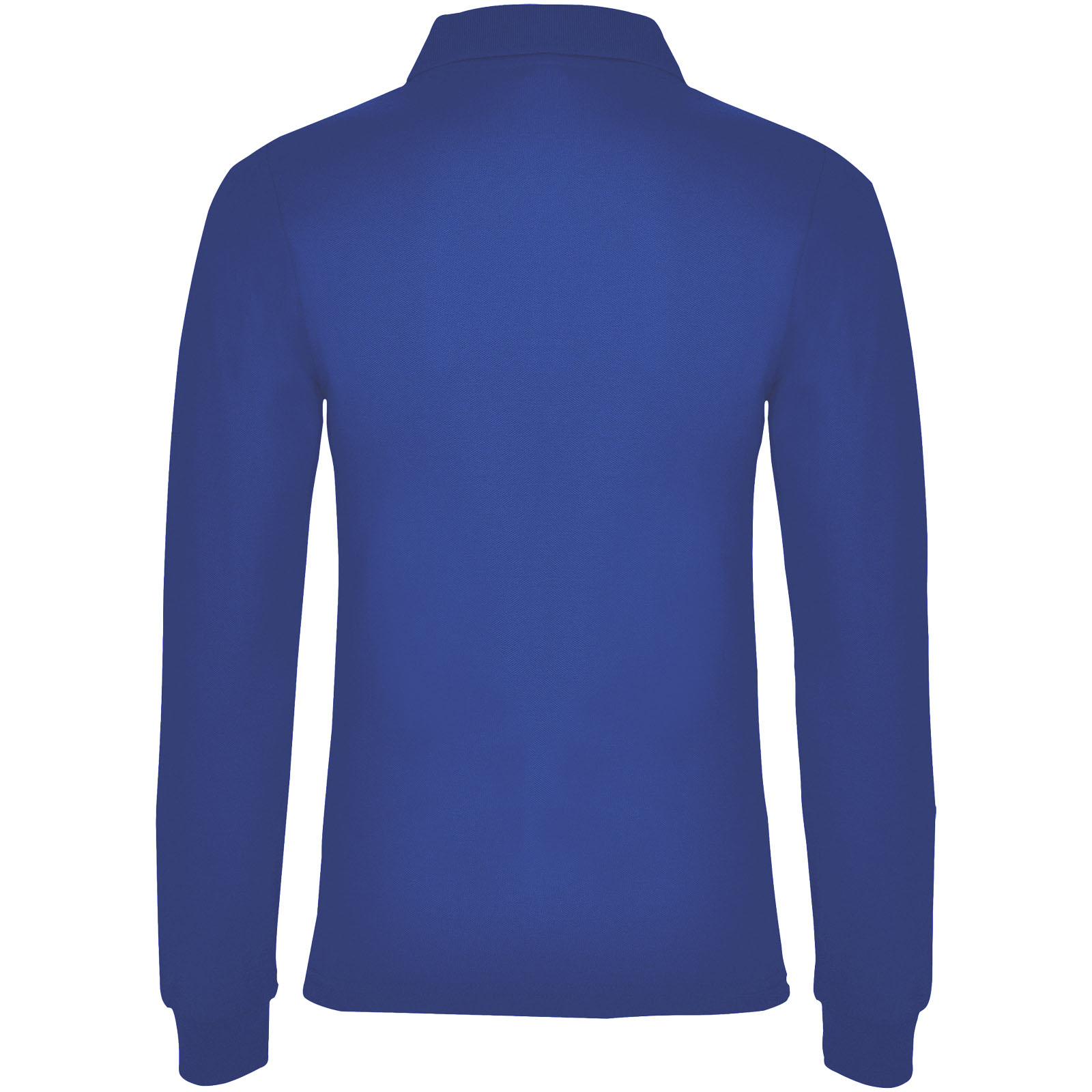 Koszulka polo z długim rękawem, prążkowanym kołnierzykiem i mankietami, zapięciem na 3 guziki i prążkowanymi mankietami 1×1 z elastanu. Wzmocnione kryte szwy w kołnierzyku. Dopasowany krój. Usuwalna metka.