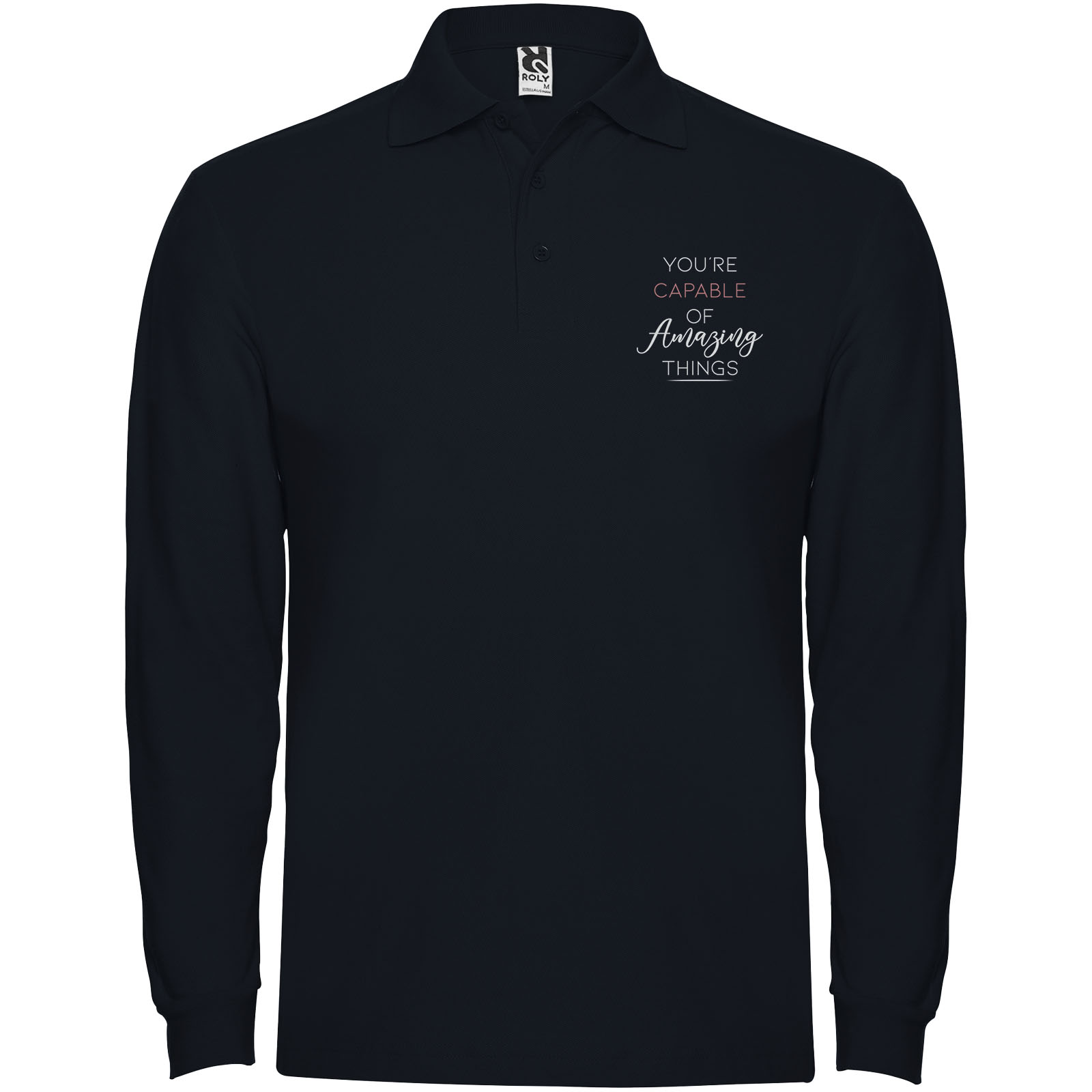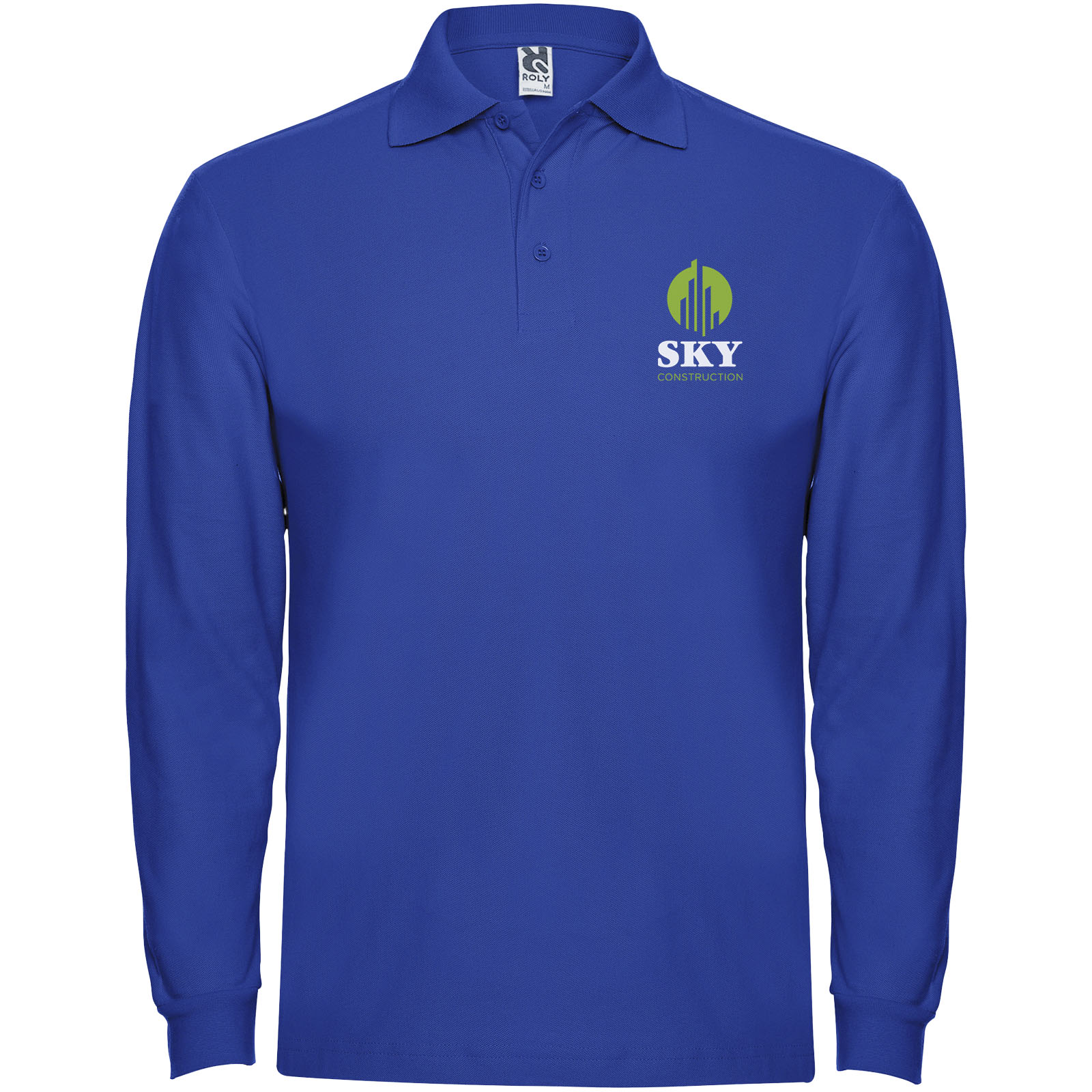 Koszulka polo z długim rękawem, prążkowanym kołnierzykiem i mankietami, zapięciem na 3 guziki i prążkowanymi mankietami 1×1 z elastanu. Wzmocnione kryte szwy w kołnierzyku. Opcjonalna kieszeń. Usuwalna metka.