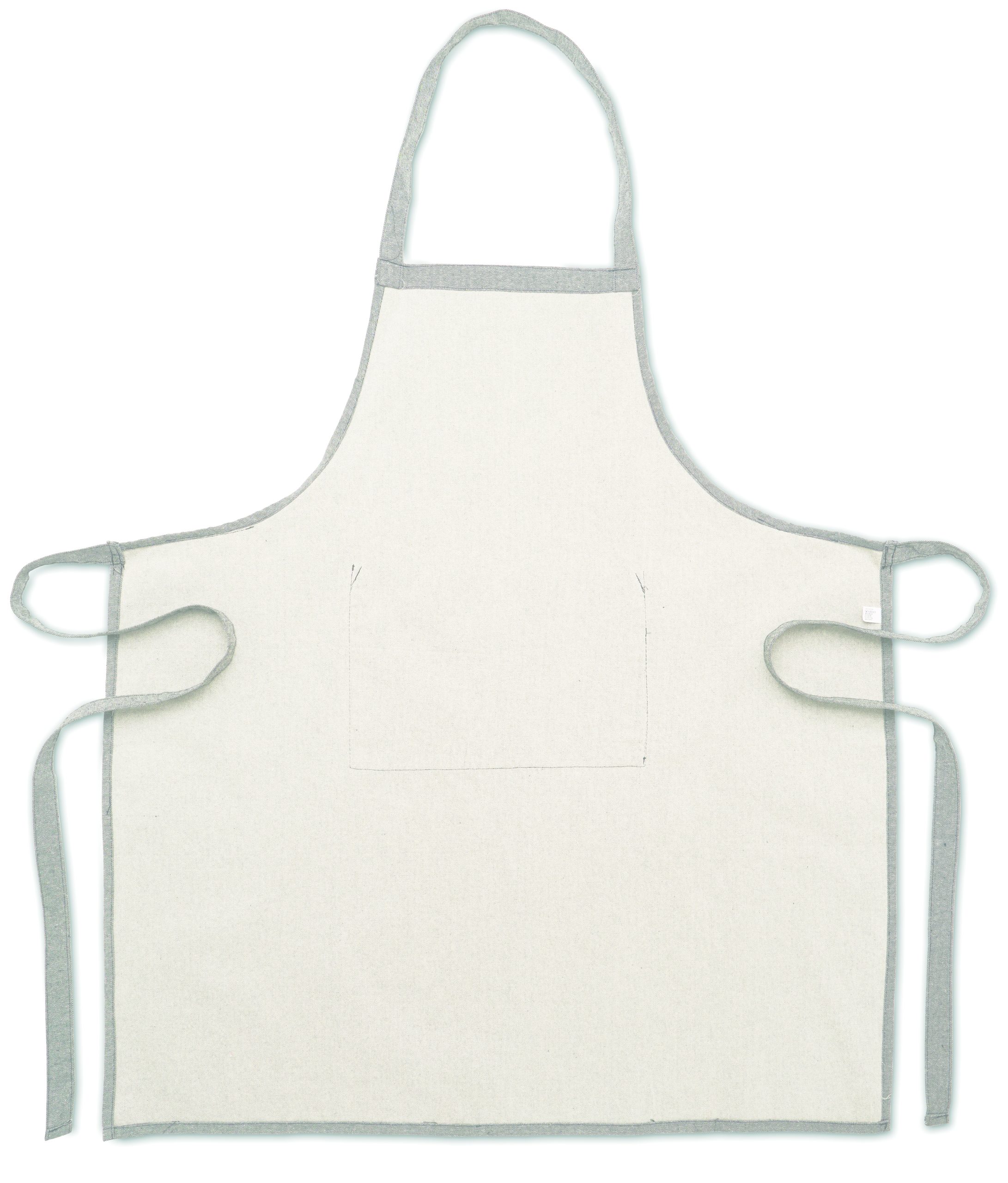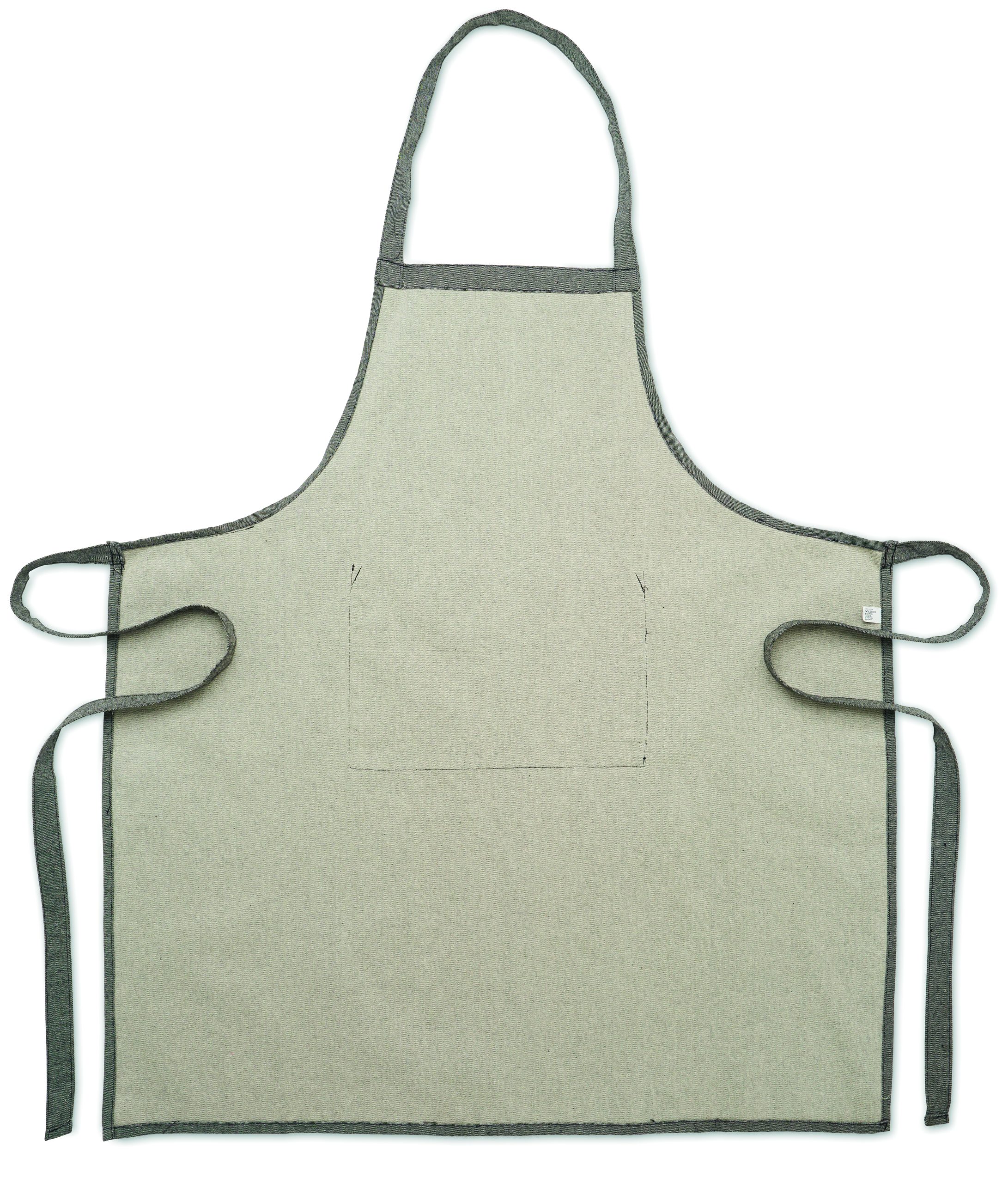 Regulowany fartuch kuchenny z 1 przednią kieszenią wykonany z bawełny z recyklingu o gramaturze 220 gr/m². (80% bawełny z recyklingu, 20% zwykłej bawełny)