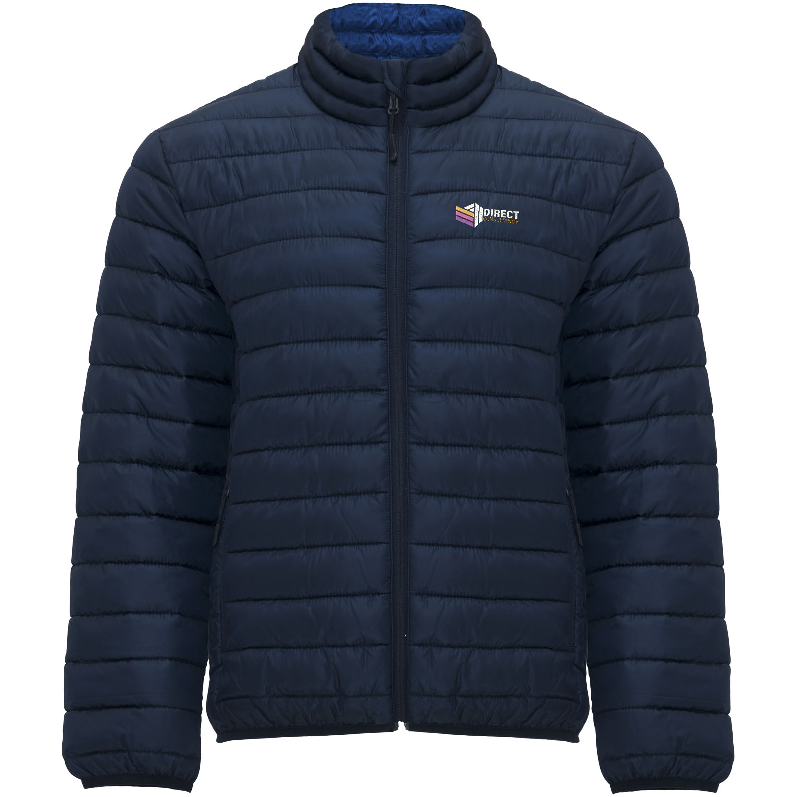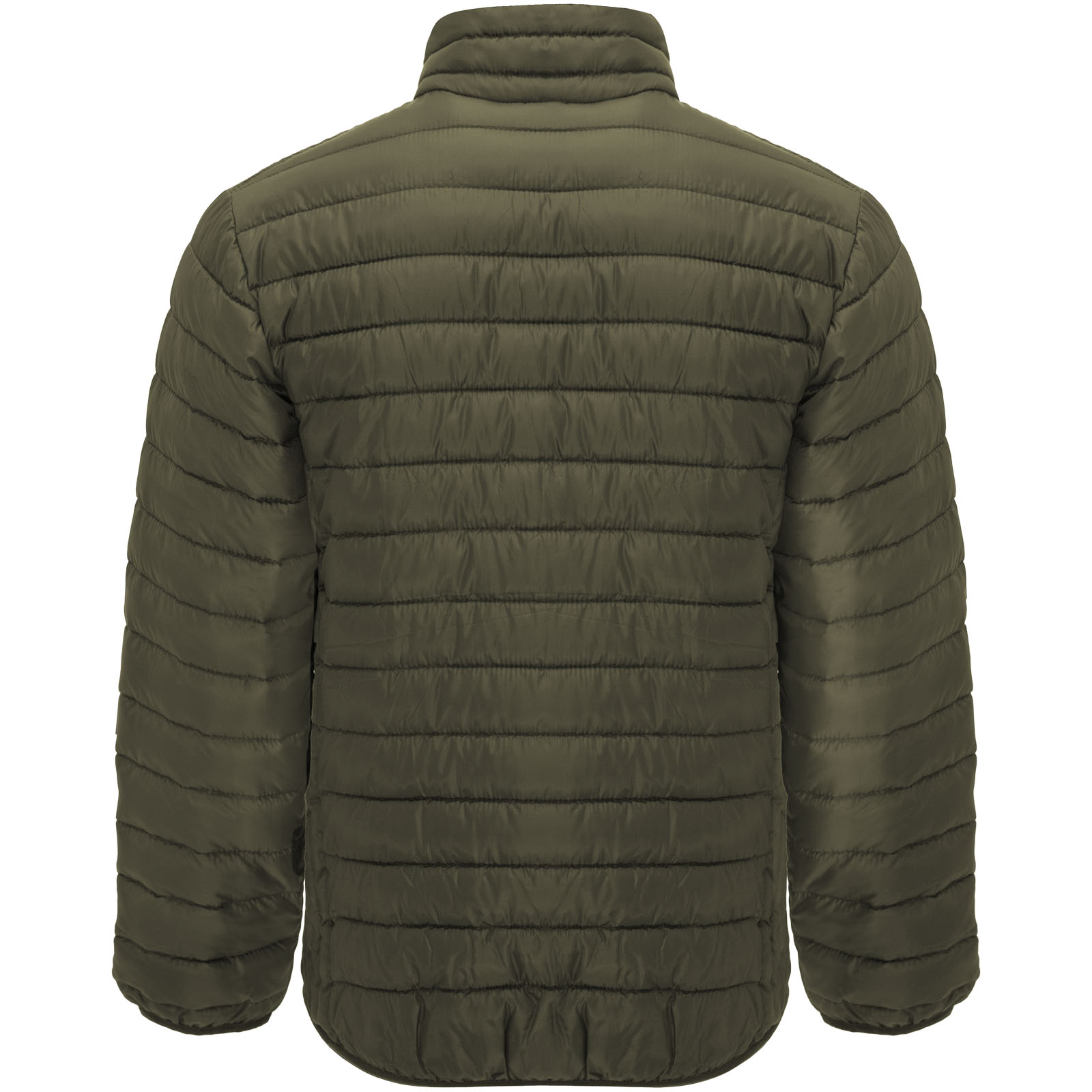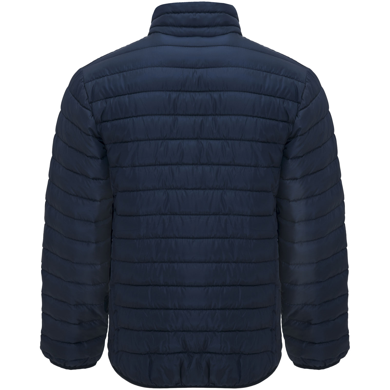 Męska kurtka pikowana z wypełnieniem imitującym w dotyku pierze. Odwrócone zamki błyskawiczne z dopasowanym ochraniaczem podbródka i ściągaczem. Dwie przednie kieszenie z zamkami błyskawicznymi. Dopasowana elastyczna lamówka w kołnierzu, mankietach i u dołu. Kontrastowa podszewka wewnętrzna. W zestawie torba transportowa. Lekka i składana odzież. Usuwalna metka. Wodoodporna. Wiatroszczelna.