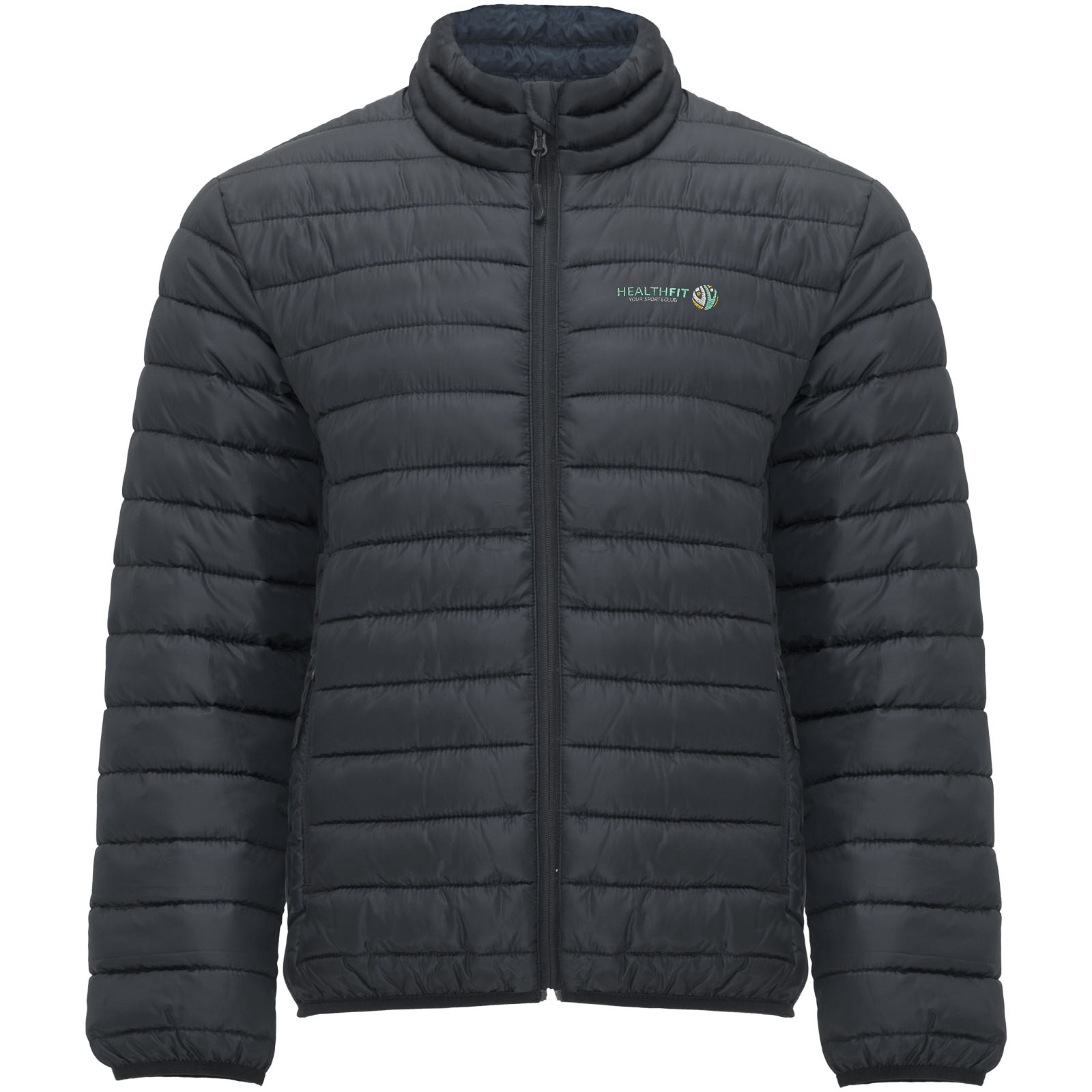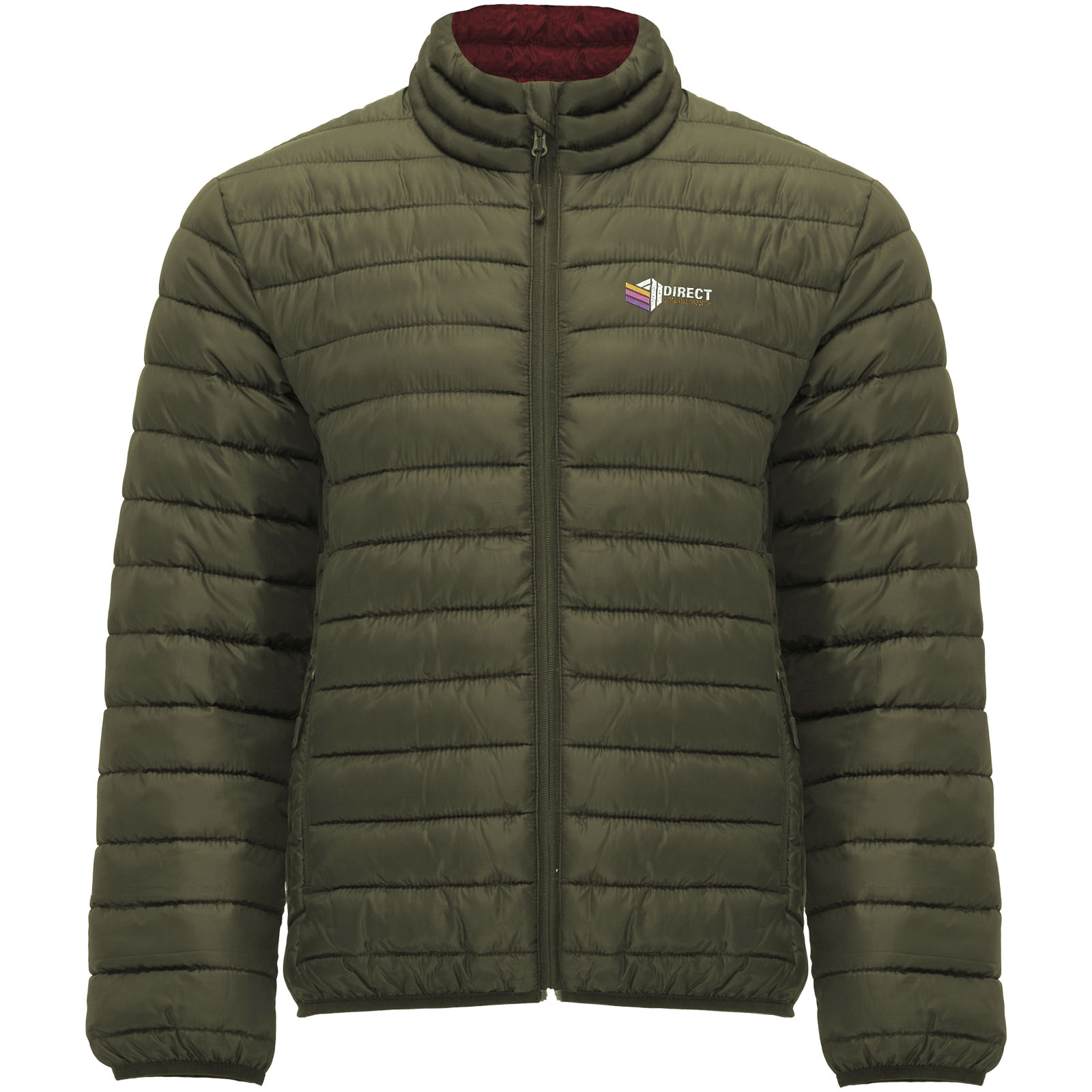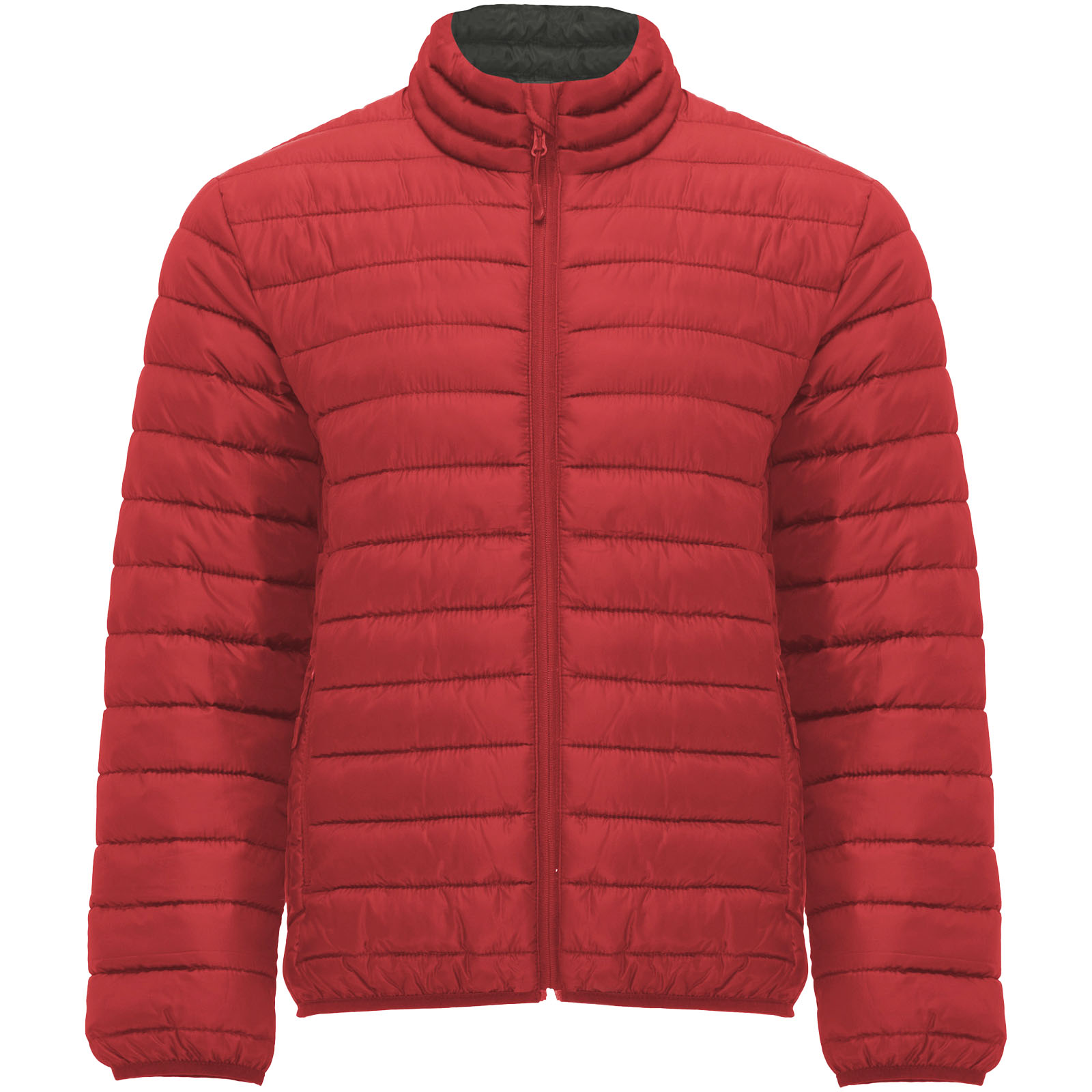 Męska kurtka pikowana z wypełnieniem imitującym w dotyku pierze. Odwrócone zamki błyskawiczne z dopasowanym ochraniaczem podbródka i ściągaczem. Dwie przednie kieszenie z zamkami błyskawicznymi. Dopasowana elastyczna lamówka w kołnierzu, mankietach i u dołu. Kontrastowa podszewka wewnętrzna. W zestawie torba transportowa. Lekka i składana odzież. Usuwalna metka. Wodoodporna. Wiatroszczelna.