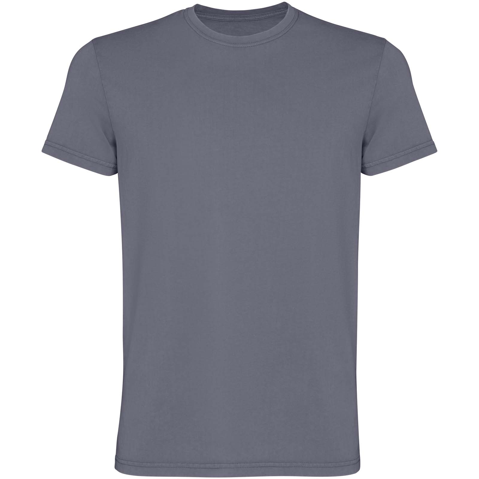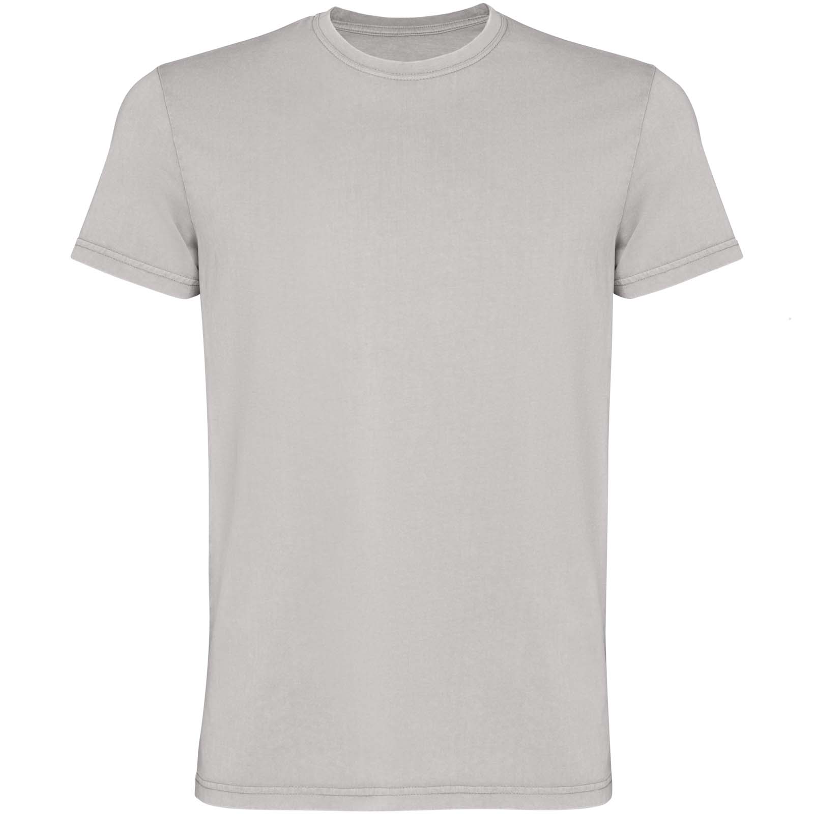 Męska koszulka z krótkim rękawem. Wykończenie uzyskane dzięki poddaniu działaniu wybielacza w celu uzyskania smug lub odbarwień. Okrągły dekolt wykończony prążkowanym ściągaczem 1×1. Ścieg kryty ton w ton z wykończeniem na wysoki połysk.