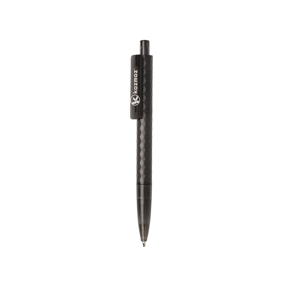 Długopis z geometrycznym wzorem na trzonie, wykonany z PC z recyklingu, niebieski wkład, długość pisania ok. 1200 m, całkowita zawartość materiałów z recyklingu obliczona w oparciu o wagę całkowitą przedmiotu: 84%