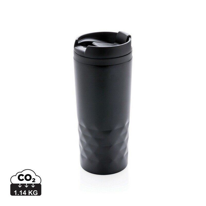 Geometryczny kubek termiczny 300 ml, plastikowe wnętrze, stal nierdzewna na zewnątrz, wyłącznie mycie ręczne, utrzymuje temperaturę napojów gorących do 4 godzin