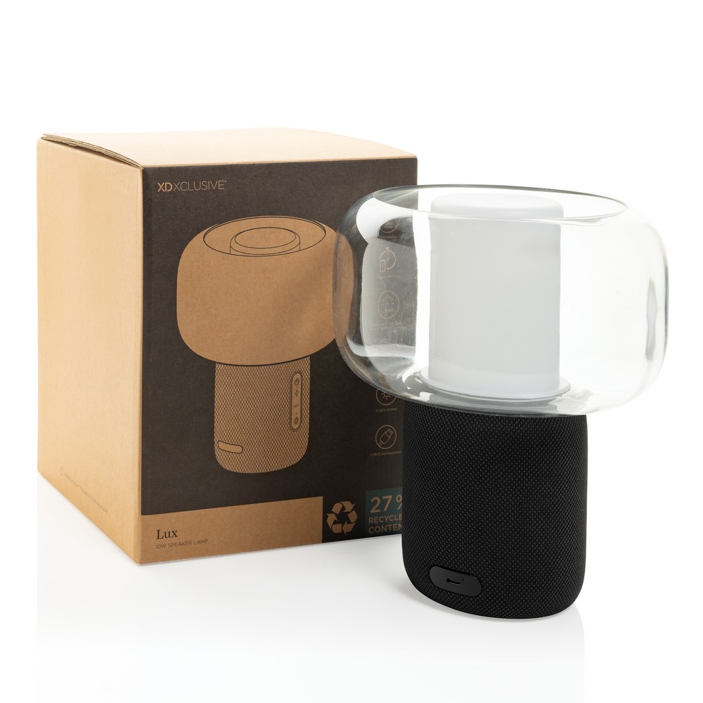 Lampka na biurko, głośnik bezprzewodowy 10W, BT 5.3, wbudowany mikrofon, funkcja odbierania połączeń, wykonany z materiałów z recyklingu, kabel w komplecie, całkowita zawartość materiałów z recyklingu obliczona na podstawie masy całkowitej produktu: 51%