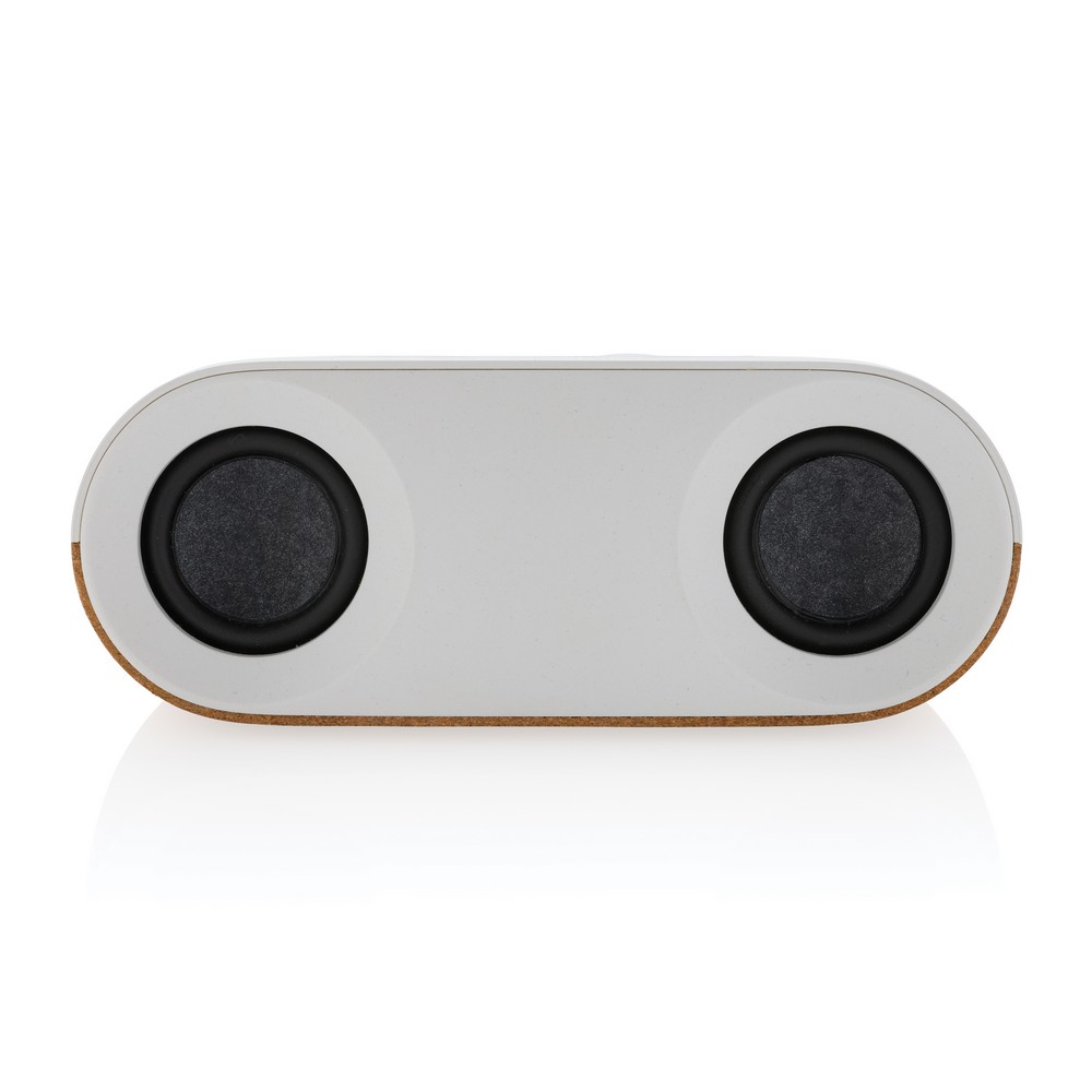 Głośnik bezprzewodowy 10W BT5.3, wbudowany mikrofon, funkcja odbierania połączeń, wbudowany akumulator o pojemności 1200 mAh pozwala na odtwarzanie muzyki do 10 godzin, zasięg do 10 m, wykonany z korka z certyfikatem FSC® oraz ABS z recyklingu z certyfikatem RCS, całkowita zawartość materiałów z recyklingu obliczona na podstawie wagi całkowitej przedmiotu: 25%, kabel z TPE z recyklingu w komplecie, w pudełku z papieru kraftowego z certyfikatem FSC® mix, ślad węglowy produktu: 2,98 kg CO2