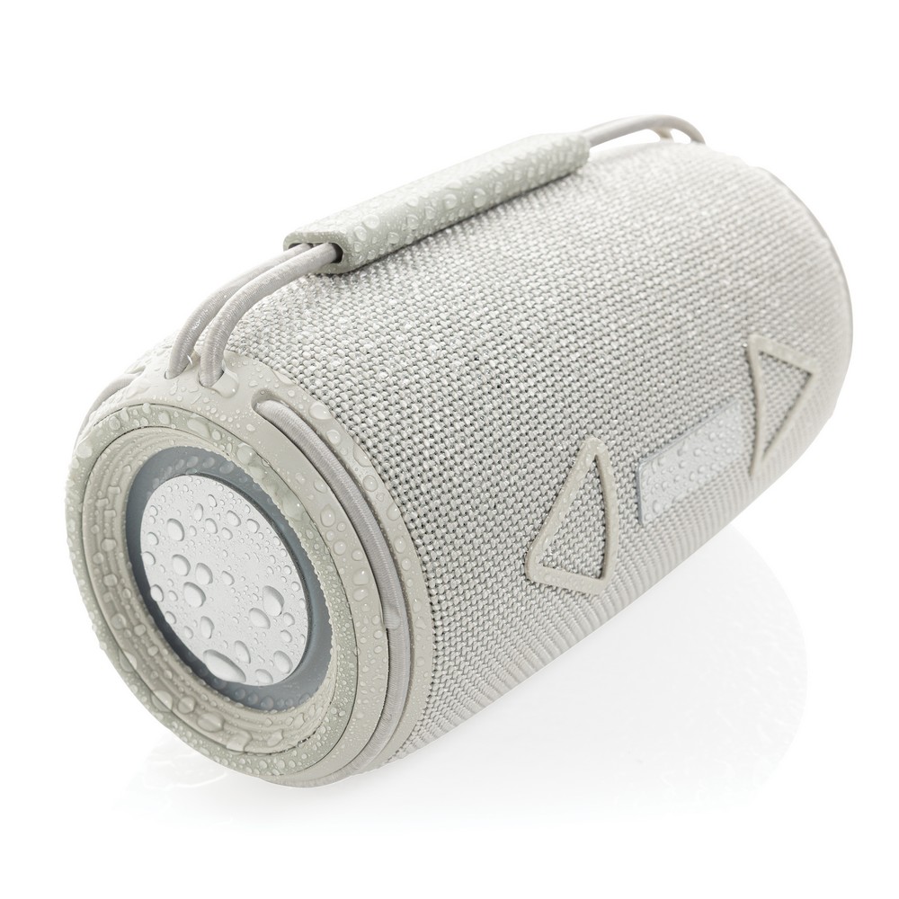 Głośnik bezprzewodowy 16W, BT 5.3, wodoodporny IPX4, wbudowany mikrofon, funkcja odbierania połączeń, posiada dwa głośniki niskotonowe, wbudowany akumulator o pojemności 1500 mAh pozwala na odtwarzanie do 7 godzin na średnim poziomie głośności, wykonany z materiałów pochodzących z recyklingu, całkowita zawartość materiałów z recyklingu obliczona na podstawie wagi całkowitej przedmiotu: 37%