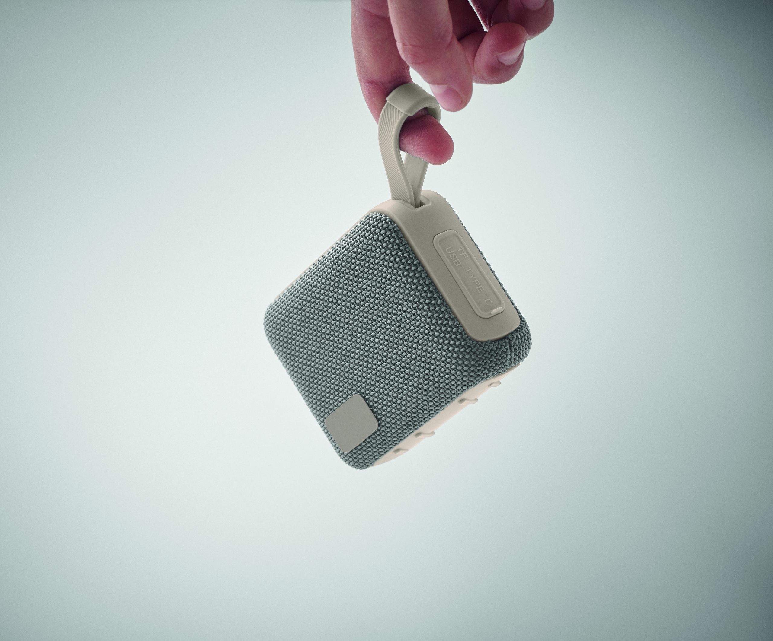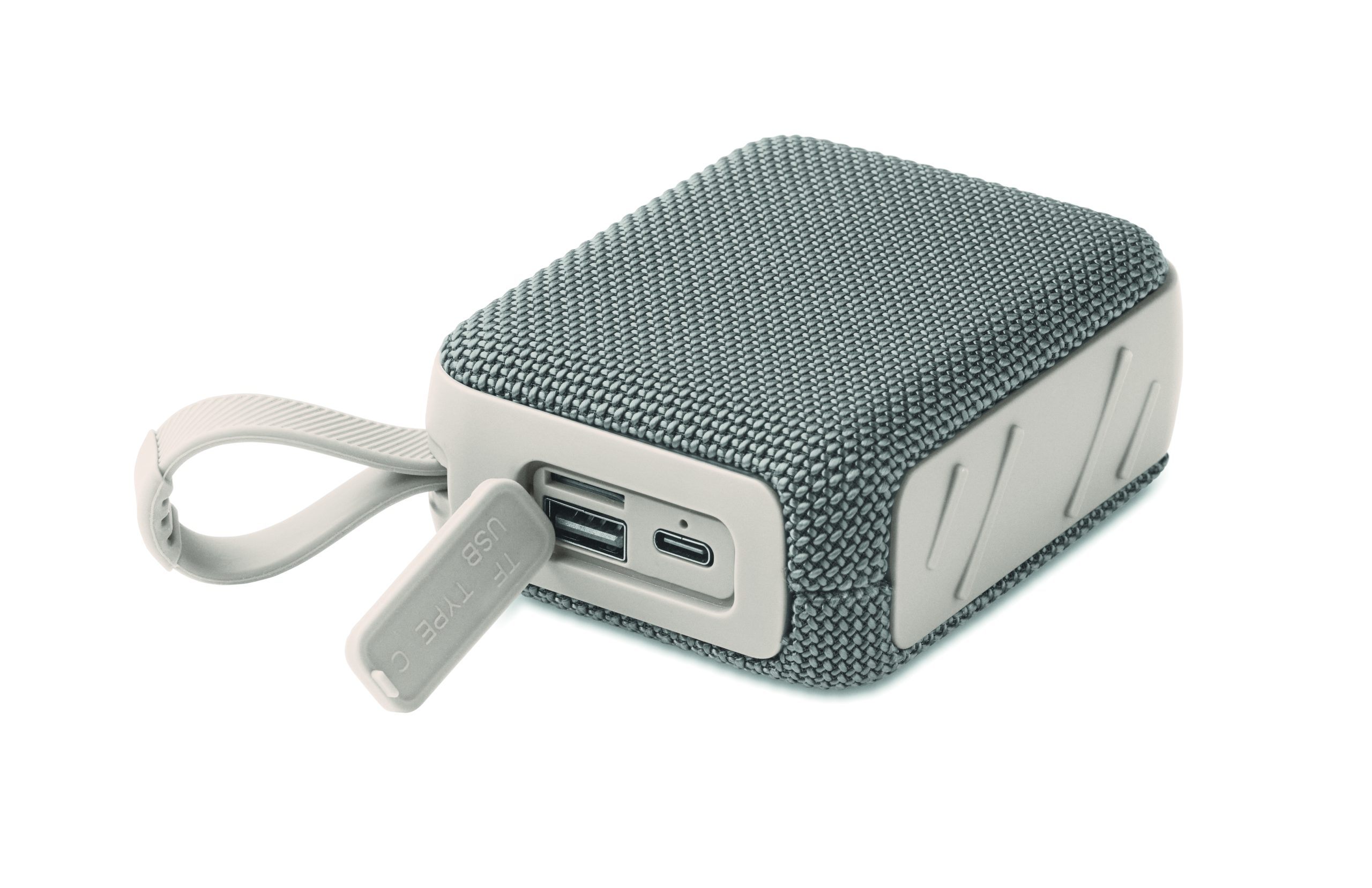5.0 bezprzewodowy głośnik z ABS z tkaniną RPET i sznurkiem do zawieszania. 1 akumulator Li-ION 800 mAh w zestawie. Zawiera port karty SD i kabel AUX/USB. Dane wyjściowe: 5W, 3 Ohm i 5V. Czas odtwarzania ok. 3 godz