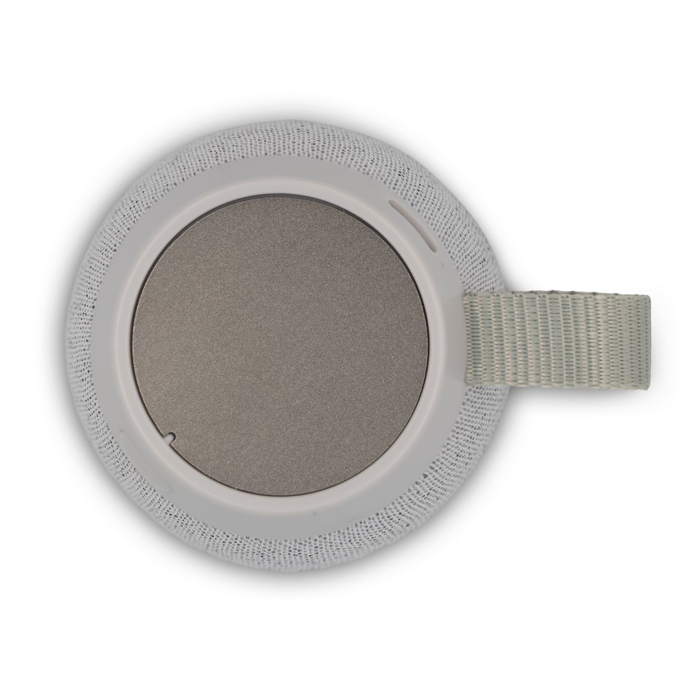 Głośnik bezprzewodowy 5W z wbudowanym magnesem w podstawie, umożliwiający stabilne mocowanie do metalowych powierzchni, kompaktowa obudowa z górną blaszką przeznaczoną pod grawer, idealny do odtwarzania muzyki w podróży i na biurku, ładowany przez USB-C
