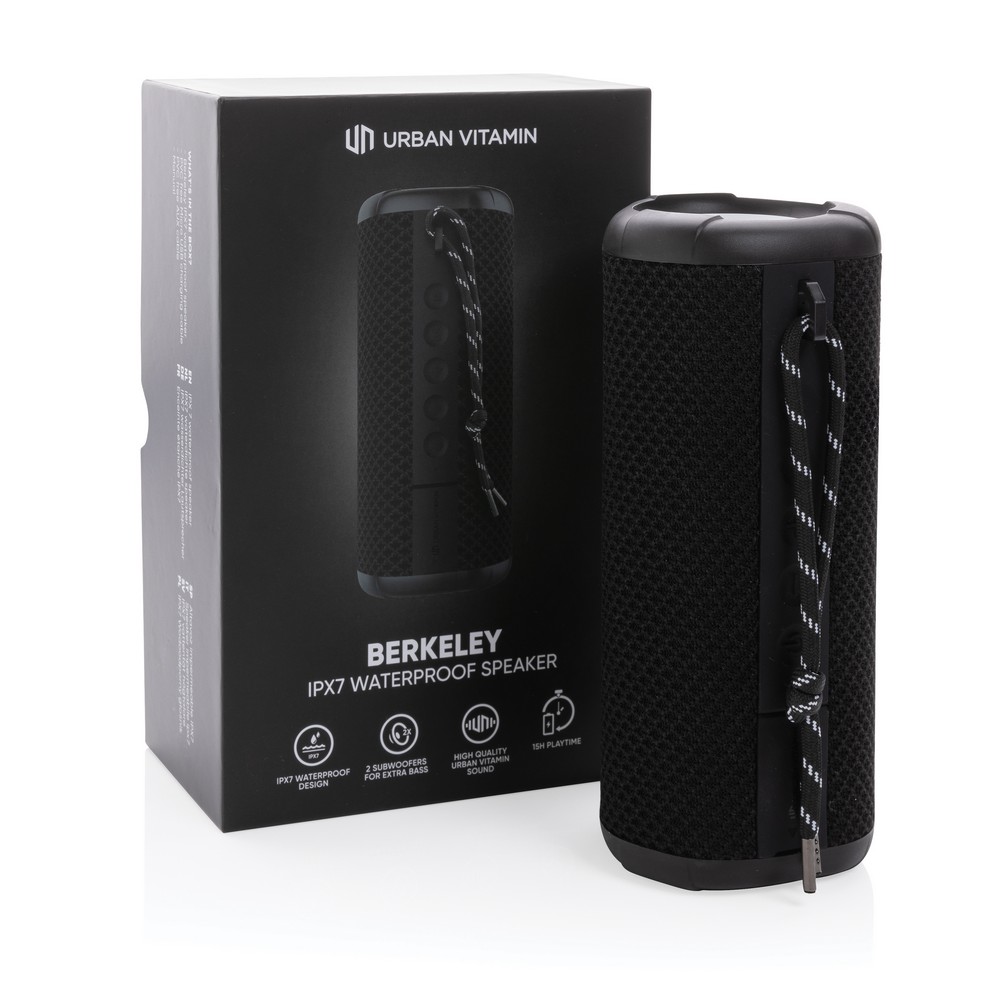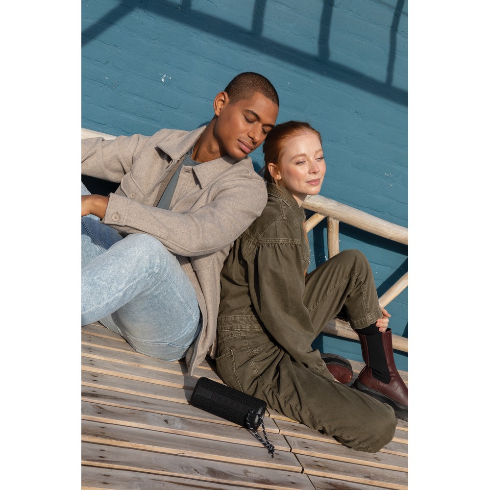 Głośnik bezprzewodowy 10W, wodoodporny IPX7 (do 30 min zanurzenia na głębokości do 1 m), wbudowany mikrofon, funkcja odbierania połączeń, do 15 godzin odtwarzania na jednym ładowaniu, mocny bas dzięki dwóm zintegrowanym głośnikom niskotonowym, wytrzymała obudowa i mocna tkanina, produkt nie zawiera PVC, opakowanie nie zawiera plastiku, ślad węglowy produktu: 4,16 kg CO2