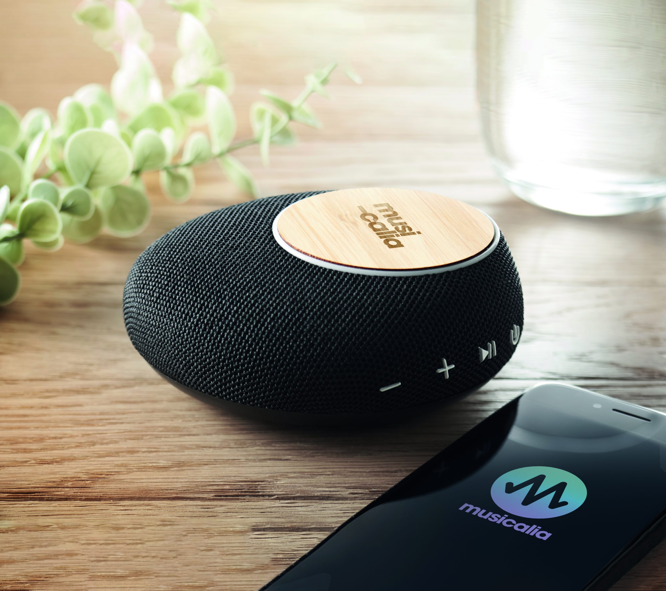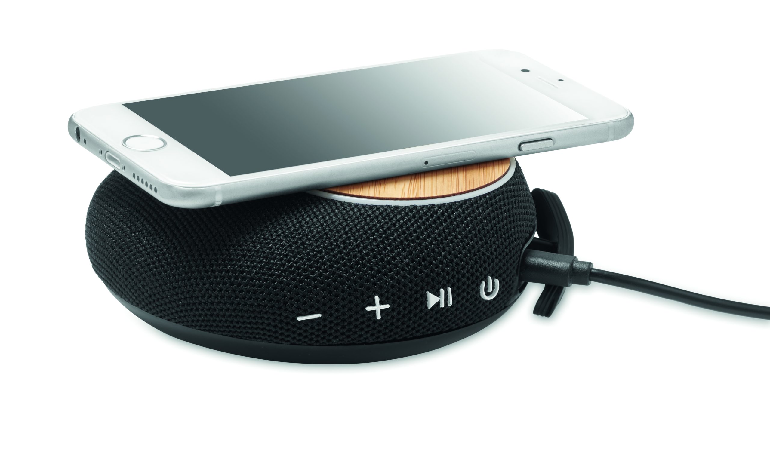 Głośnik bezprzewodowy 5.1 z ABS i z bambusowym wykończeniem. Posiada wbudowaną ładowarkę bezprzewodową 10W oraz power bank 4000 mAh. Wbudowany akumulator o pojemności 1800 mAh. Wyjście DC 9V/1.1A. Bambus jest produktem naturalnym, dlatego mogą wystąpić nieznaczne różnice w kolorze, wzorze i rozmiarze.