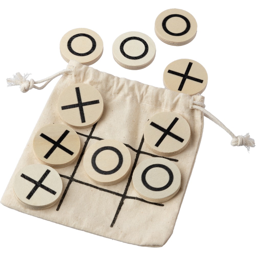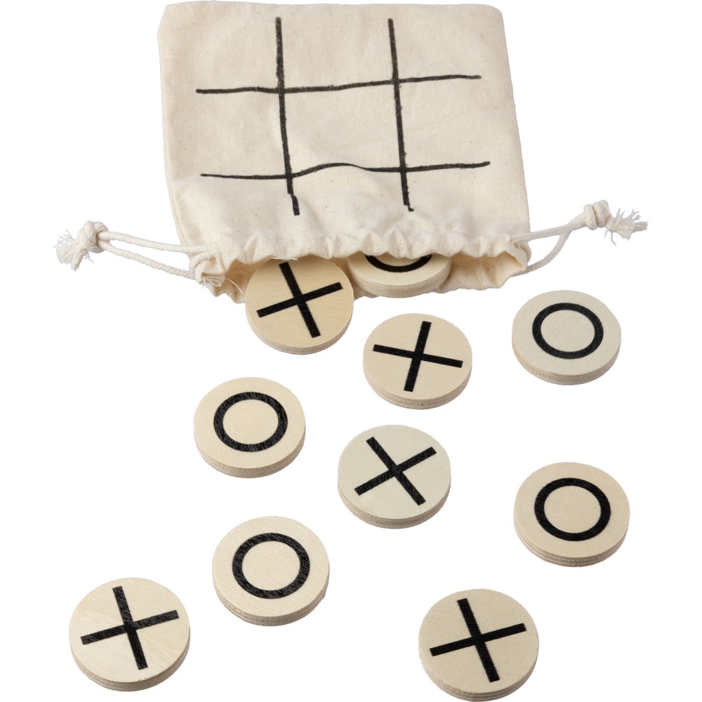 Gra „kółko i krzyżyk”, zawiera 10 małych drewnianych żetonów zapakowanych w bawełniany woreczek, produkt wykonany z drewna