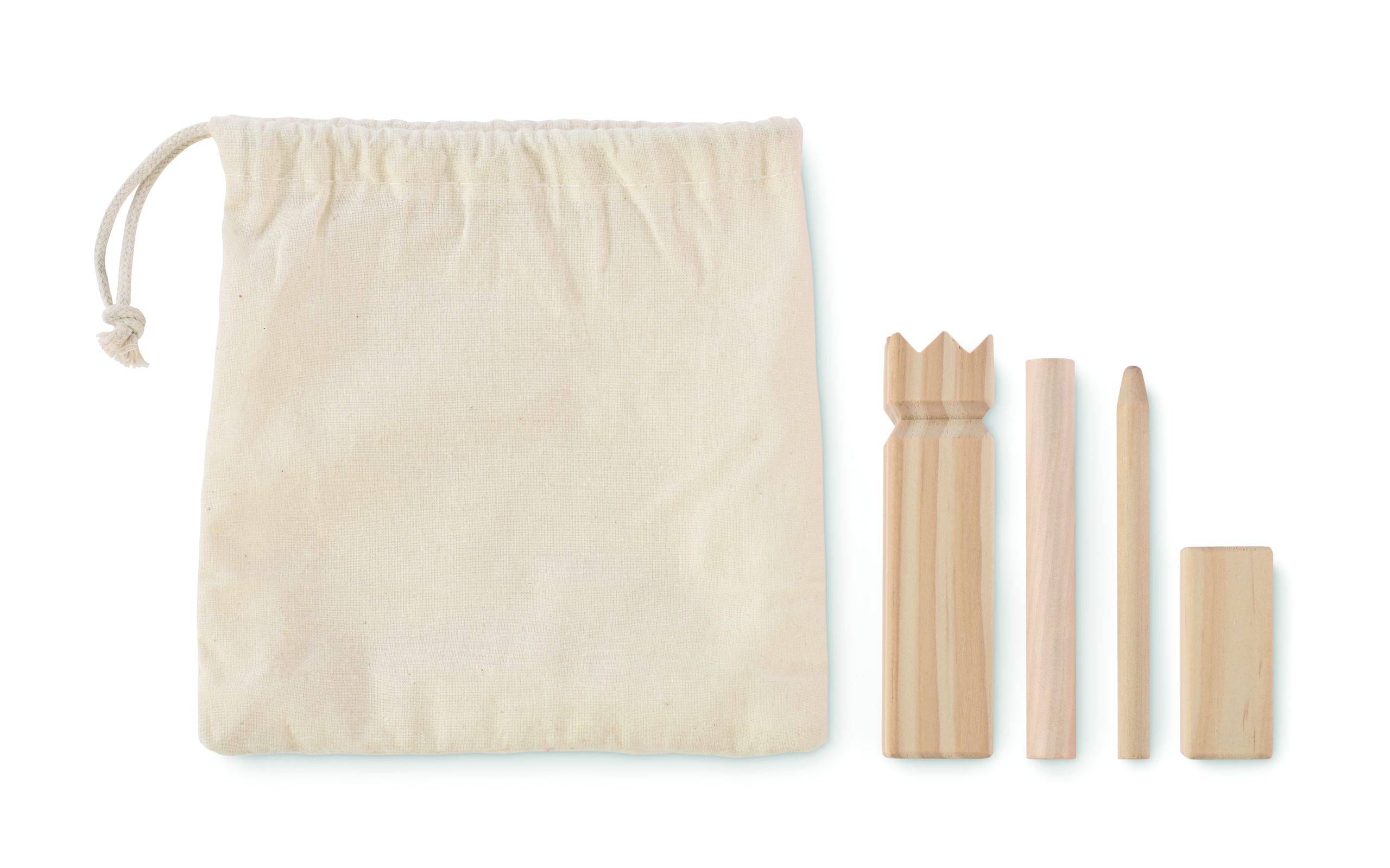 Mała gra rzutki z drewna sosnowego w bawełnianym woreczku ze sznurkiem. FSC®-certified | FSC 100%, W15.2, FSC-C213206