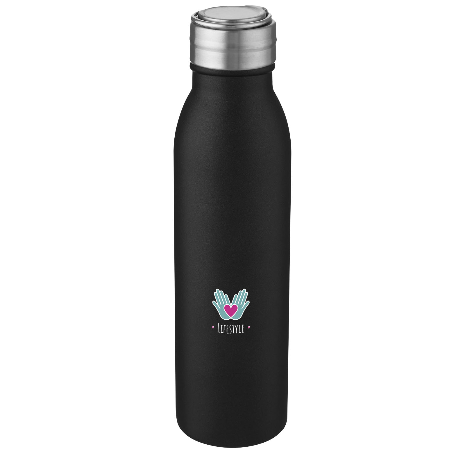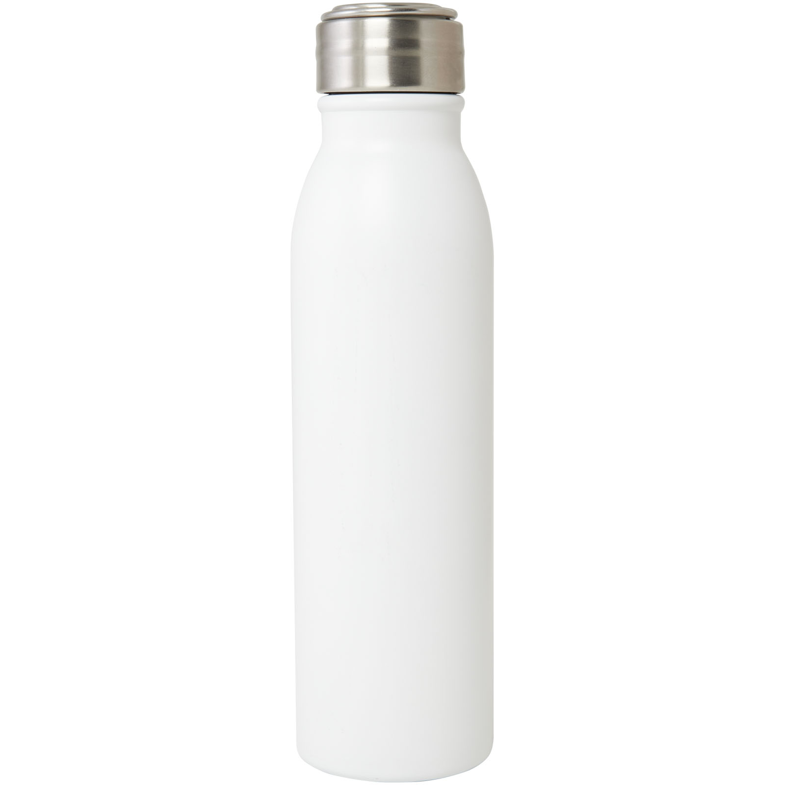 Jednościenna butelka na wodę ze stali nierdzewnej z certyfikatem RCS z zakręcaną, odporną na rozlanie pokrywką i wytrzymałym uchwytem do przenoszenia wykonanym ze stopu cynku. Nie zawiera BPA, przetestowana i zatwierdzona zgodnie z niemieckimi przepisami dotyczącymi bezpieczeństwa żywności (LFGB). Przetestowana i zatwierdzona pod kątem zawartości ftalanów zgodnie z przepisami REACH. Pasuje do większości standardowych uchwytów samochodowych. Pojemność 720 ml. Zalecane mycie ręczne. Zapakowana w pudełko upominkowe wykonane z kartonu z recyklingu.