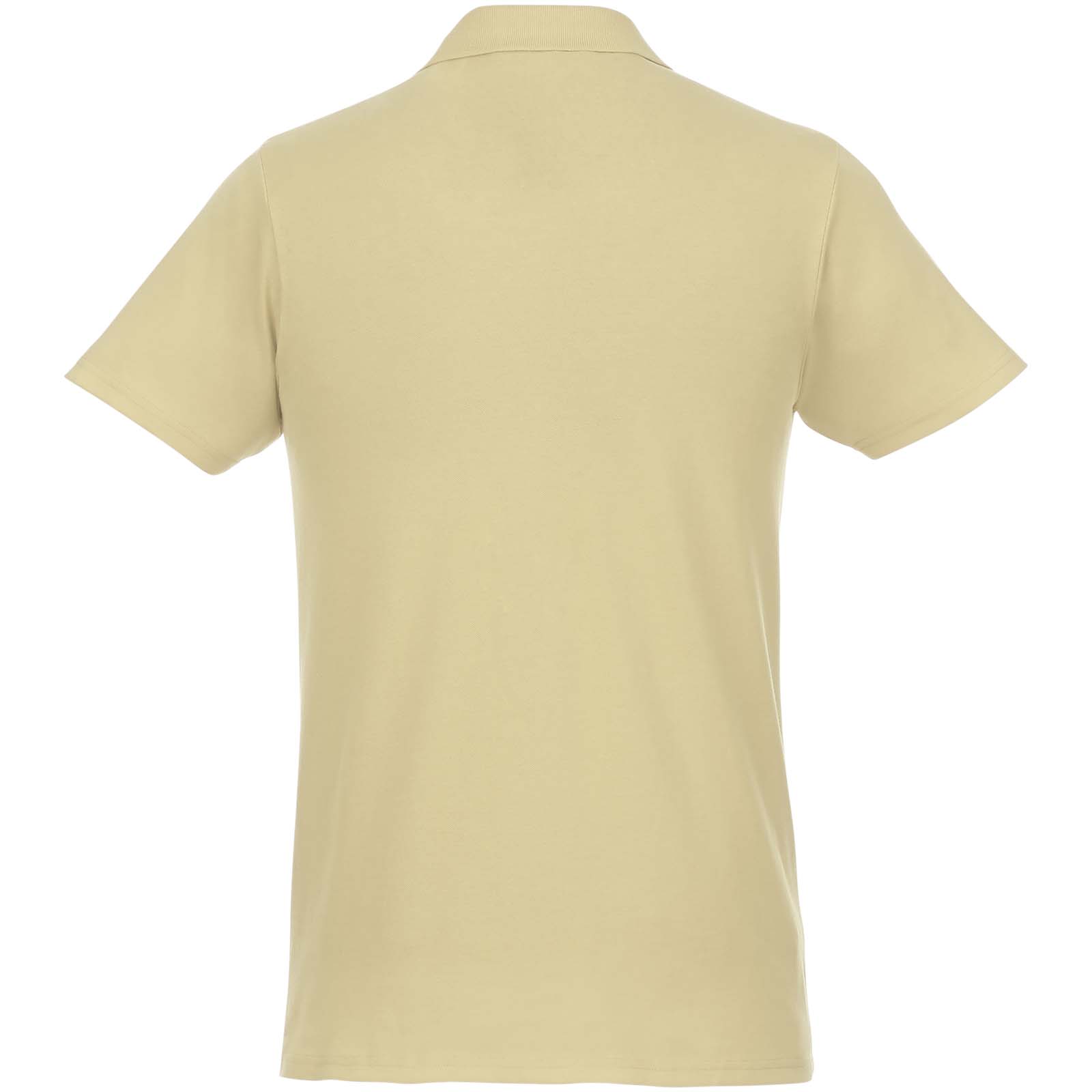 Męska koszulka polo z krótkim rękawem Helios łączy wyrafinowany styl z unikalnymi opcjami niestandardowego brandingu. Wykonana z bawełny pique o gramaturze 180 g/m², zapewnia lekkość, wygodę i trwałość. Wnętrze, w tym odrywana etykieta główna, pozwala na niestandardowe umieszczenie logo, dzięki czemu jest to idealny wybór na każdą okazję. Dzięki klasycznemu kołnierzykowi polo i krótkim rękawom bez trudu przejdziesz od codziennych do formalnych okazji. Dostępnych jest wiele kolorów pasujących do każdej marki.