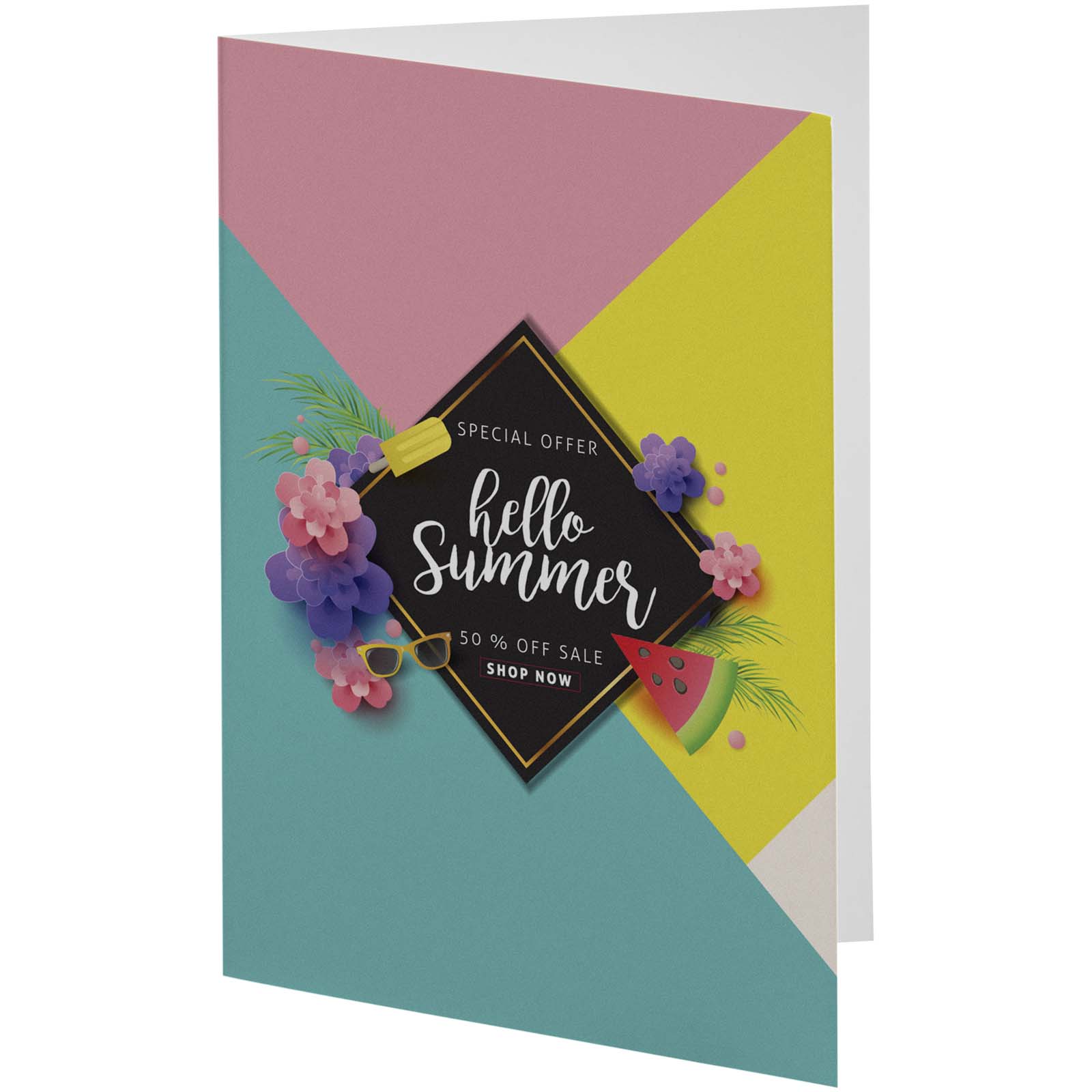 Herald kartka okolicznościowa w formacie A6 wydrukowana na wysokogatunkowym kartonie o gramaturze 320 g/m². Umożliwia nadruk własnych wzorów zarówno na zewnątrz, jak i wewnątrz. Wzbogać swoje projekty folią klejoną na gorąco i wytłaczanymi elementami, które nadadzą Twoim kartkom okolicznościowym nową jakość. Dostarczana standardowo z białą kopertą. Wymiary karty: 105 x 148 mm.
