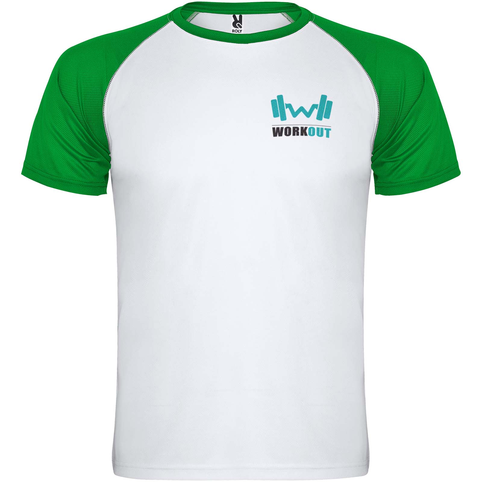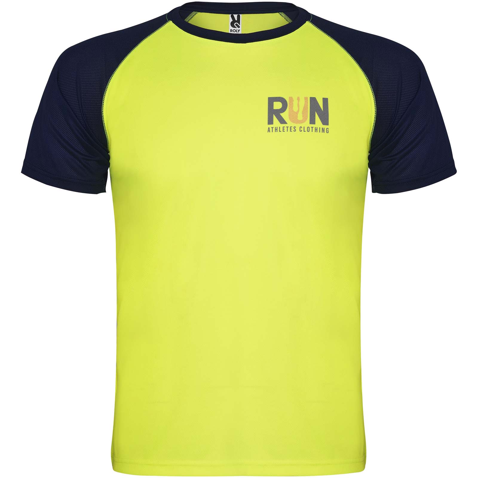 Techniczny i oddychający materiał. Raglanowe kontrastowe rękawy. Okrągły dekolt z kontrastowymi, wzmocnionymi, krytymi szwami. Usuwalna etykieta.
