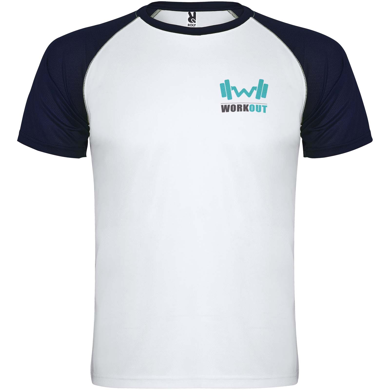 Techniczny i oddychający materiał. Raglanowe kontrastowe rękawy. Okrągły dekolt z kontrastowymi, wzmocnionymi, krytymi szwami. Usuwalna etykieta.