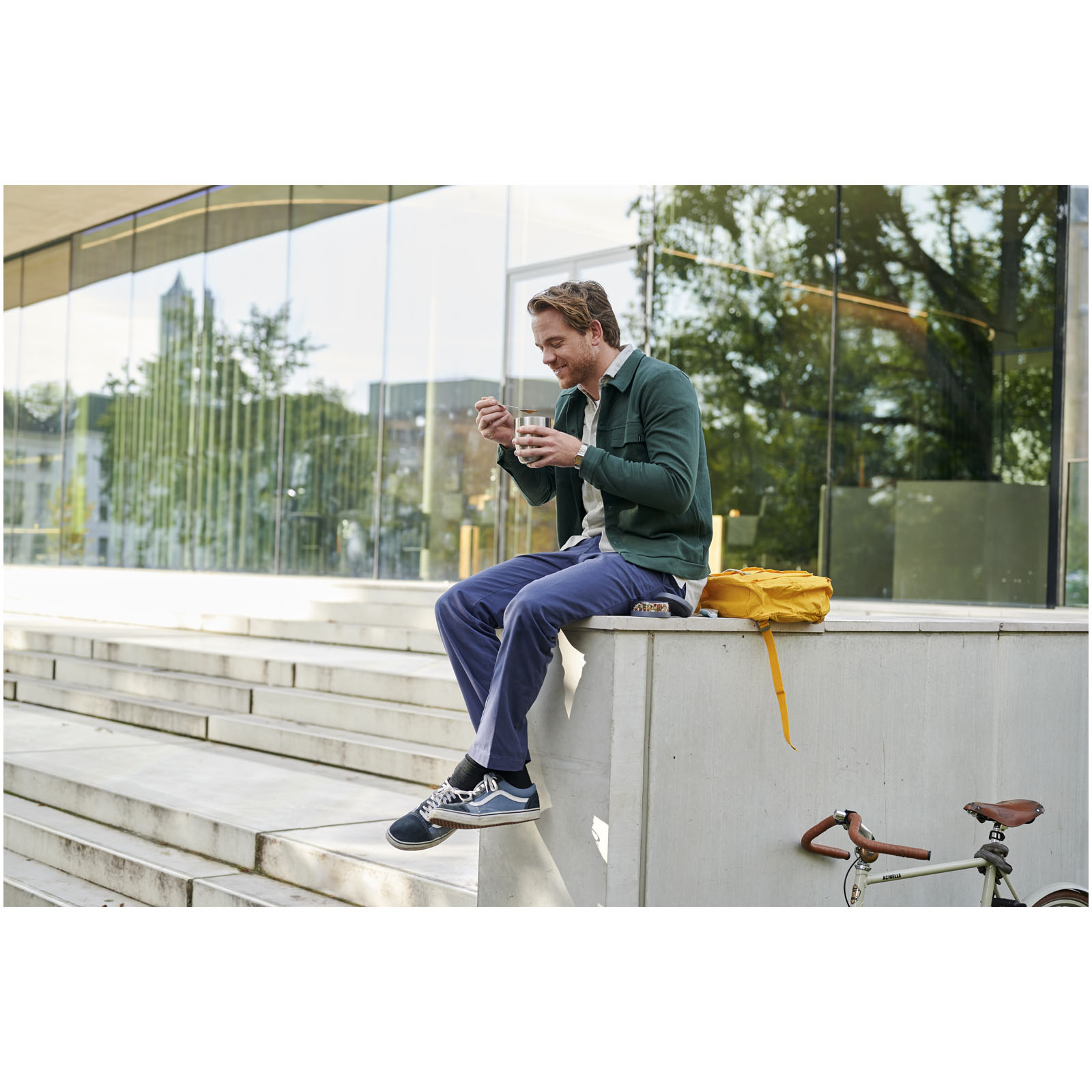 Izolowany pojemnik na lunch z dwiema komorami, aby oddzielenie przechowywać różne składniki. Oba pojemniki mają osobną pokrywkę, dzięki czemu składniki nie mieszają się. Utrzymuje temperaturę potraw gorących do 10 godzin lub zimnych do 16 godzin. Aby potrawy jak najdłużej pozostały gorące lub zimne, przed napełnieniem zaleca się przepłukać pojemnik na lunch gorącą lub lodowatą wodą. Pojemność górnego przezroczystego pojemnika wynosi 200 ml, co oznacza, że może pomieścić około 75 gramów żywności w formie stałej. Pojemność dolnego pojemnika wynosi 500 ml. Wykonany z trwałego materiału. Zewnętrzna strona naczynia pozostaje chłodna i sucha. Zalecane jest mycie ręczne. Plastikowe elementy pokrywki można myć w zmywarce. Wodoszczelne. Wolne od BPA.